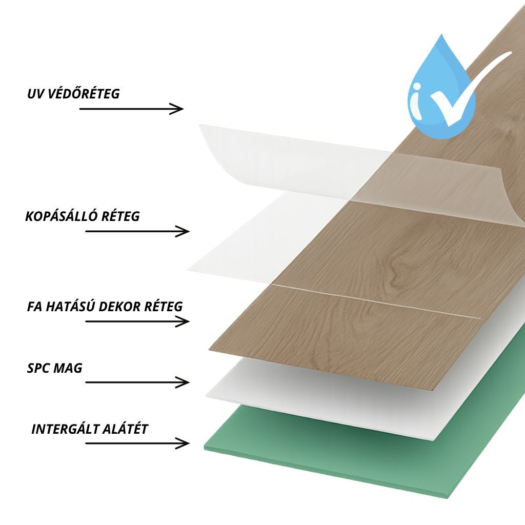 A merev SPC hordozóréteg miatt nem vetemedik, nem dagad és nem mozdul el hőmérsékletváltozás hatására.