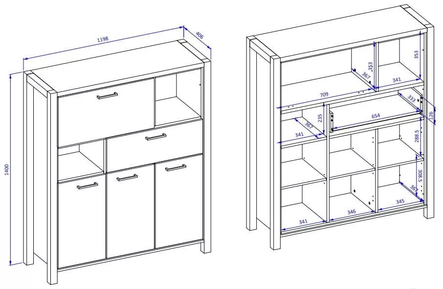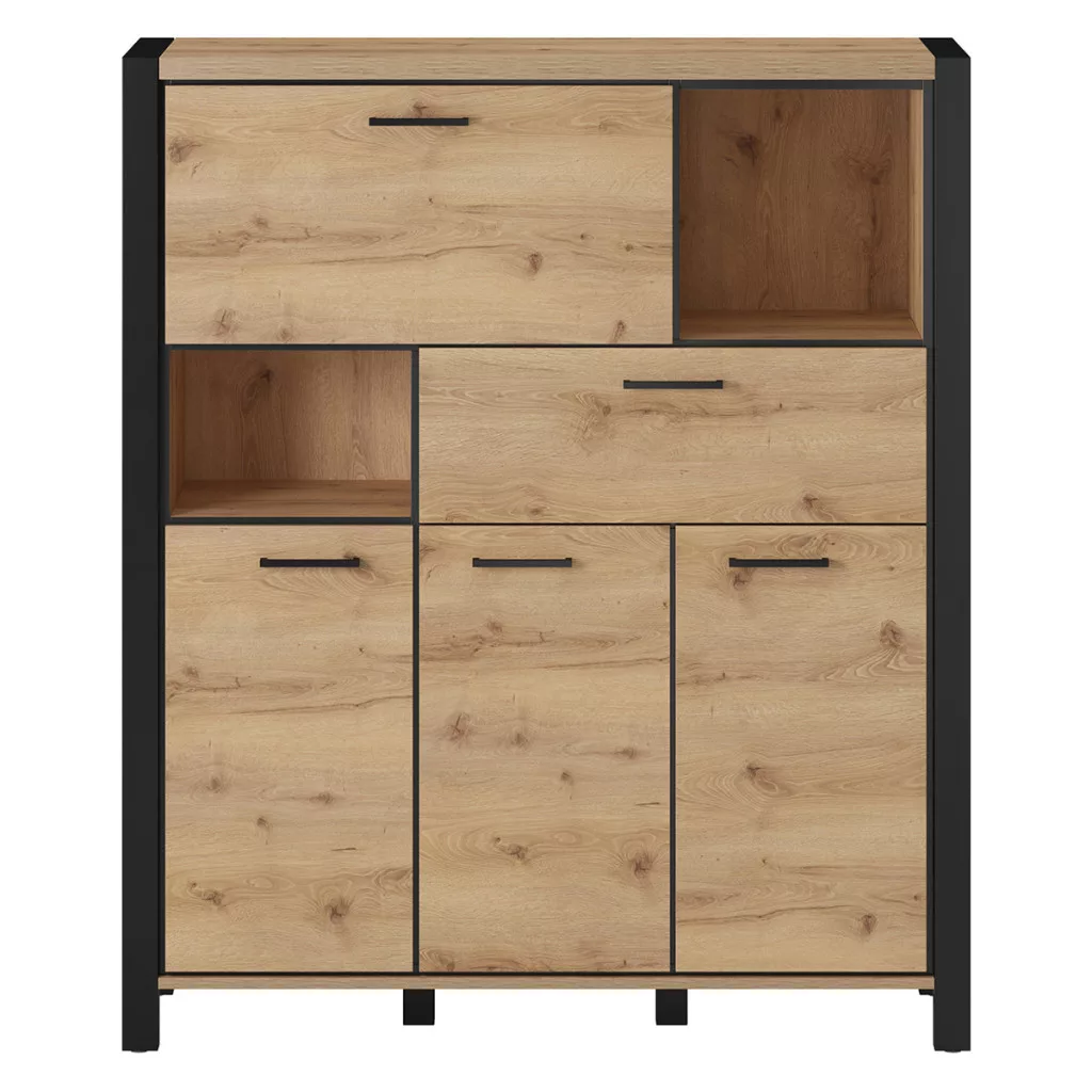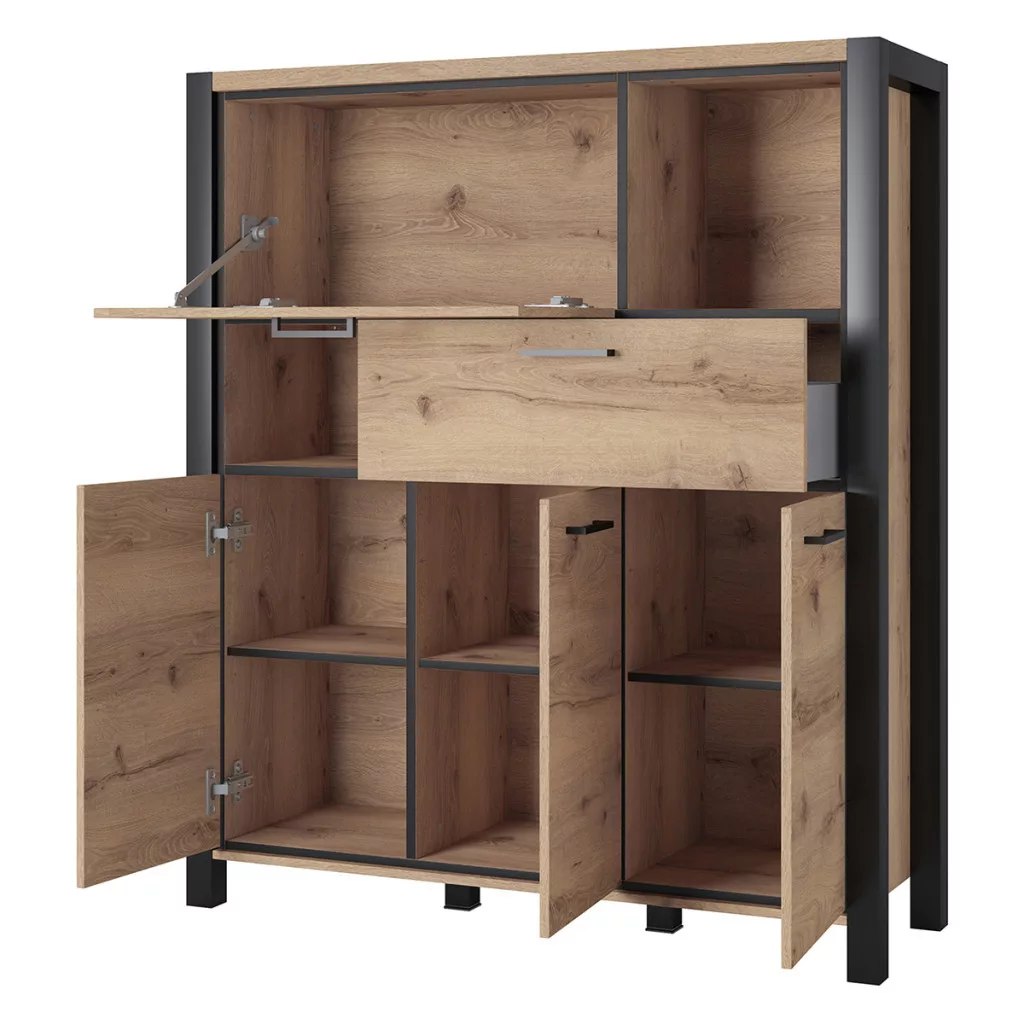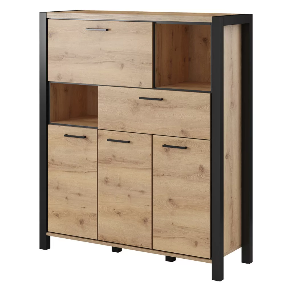 Magas komód rengeteg tárolóhellyel.