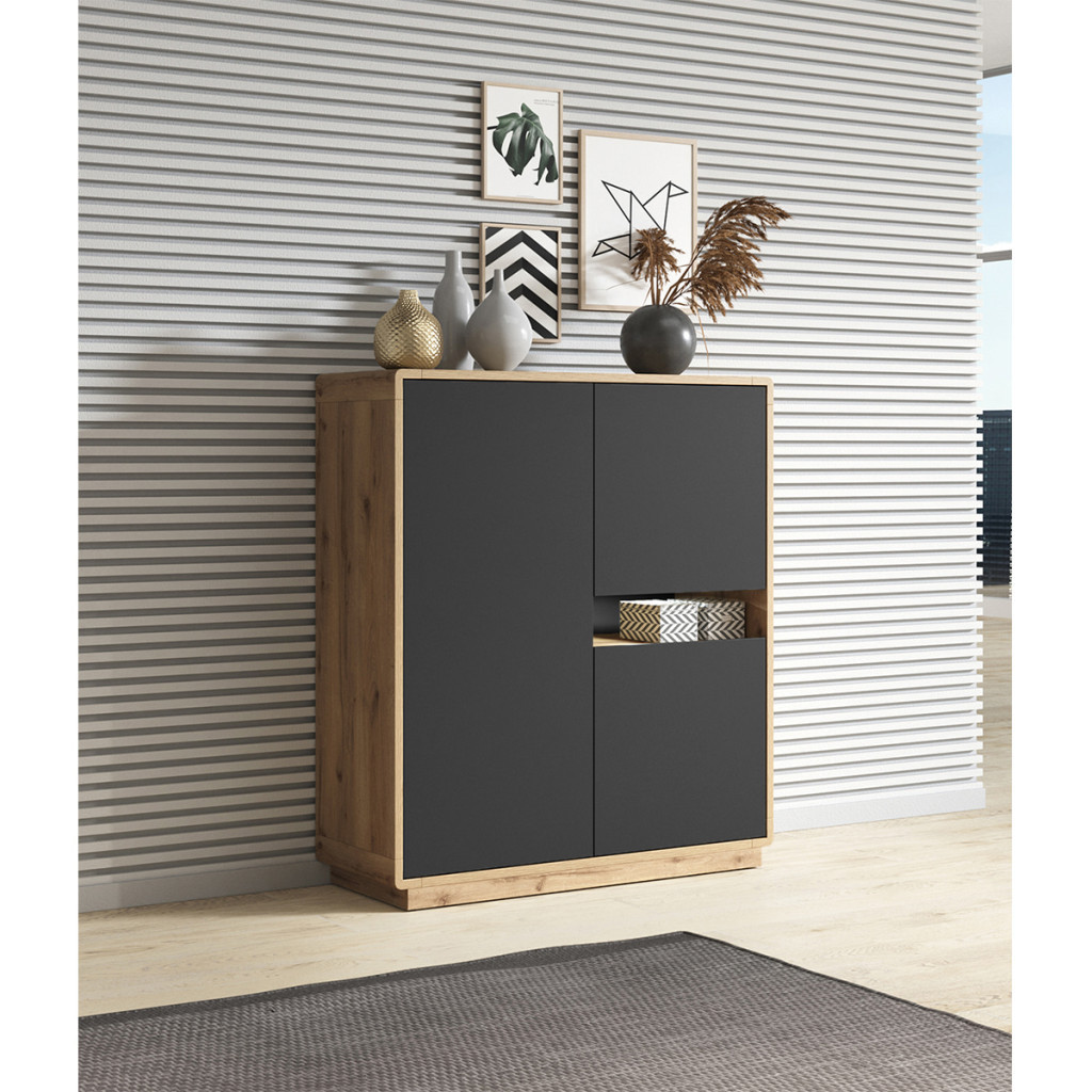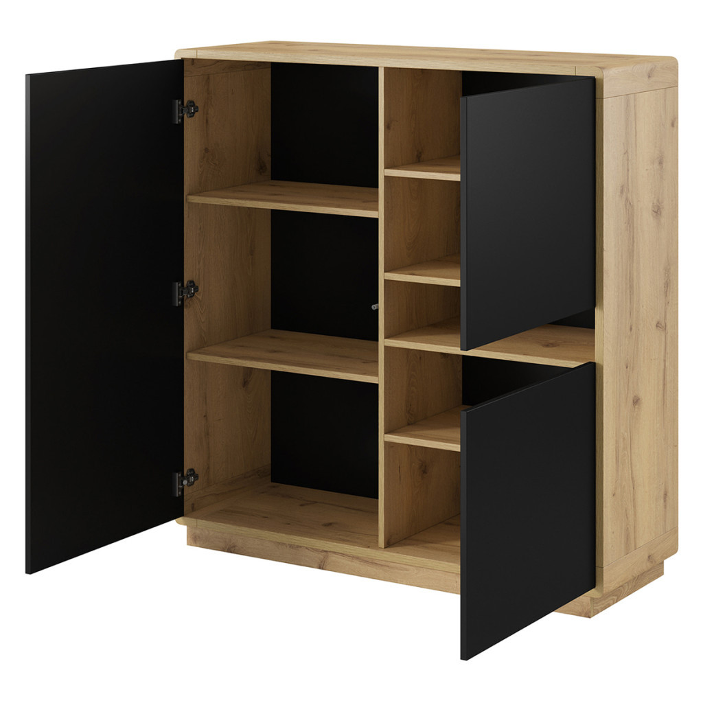 A három nyílóajtó mögött rengeteg helyet talál, míg a nyitott polc alkalmas tekortárgyak tárolására/bemutatására.