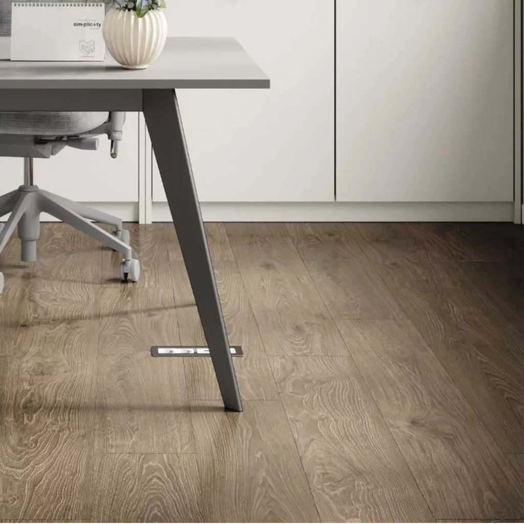 Az Atlantic 8 Dark Montanara Oak K849 egy stílusos, sötét tölgy dekorral rendelkező laminált padló, amely a klasszikus fa karaktert modern tartóssággal ötvözi. A kinézet és a 4 oldali V-fuga természetes, prémium hatást biztosítanak. A padló magja és a strapabíró felülete alkalmassá teszi otthoni helyiségekben való használatra, beleértve a nagyközlekedésű zónákat (pl. előszoba, nappali) is. Víz- és páratűrő kialakítása miatt a nedvesebb helyiségekben is jól működik. A termék a klikkes rendszerrel könnyen telepíthető, és kompatibilis padlófűtéssel is.