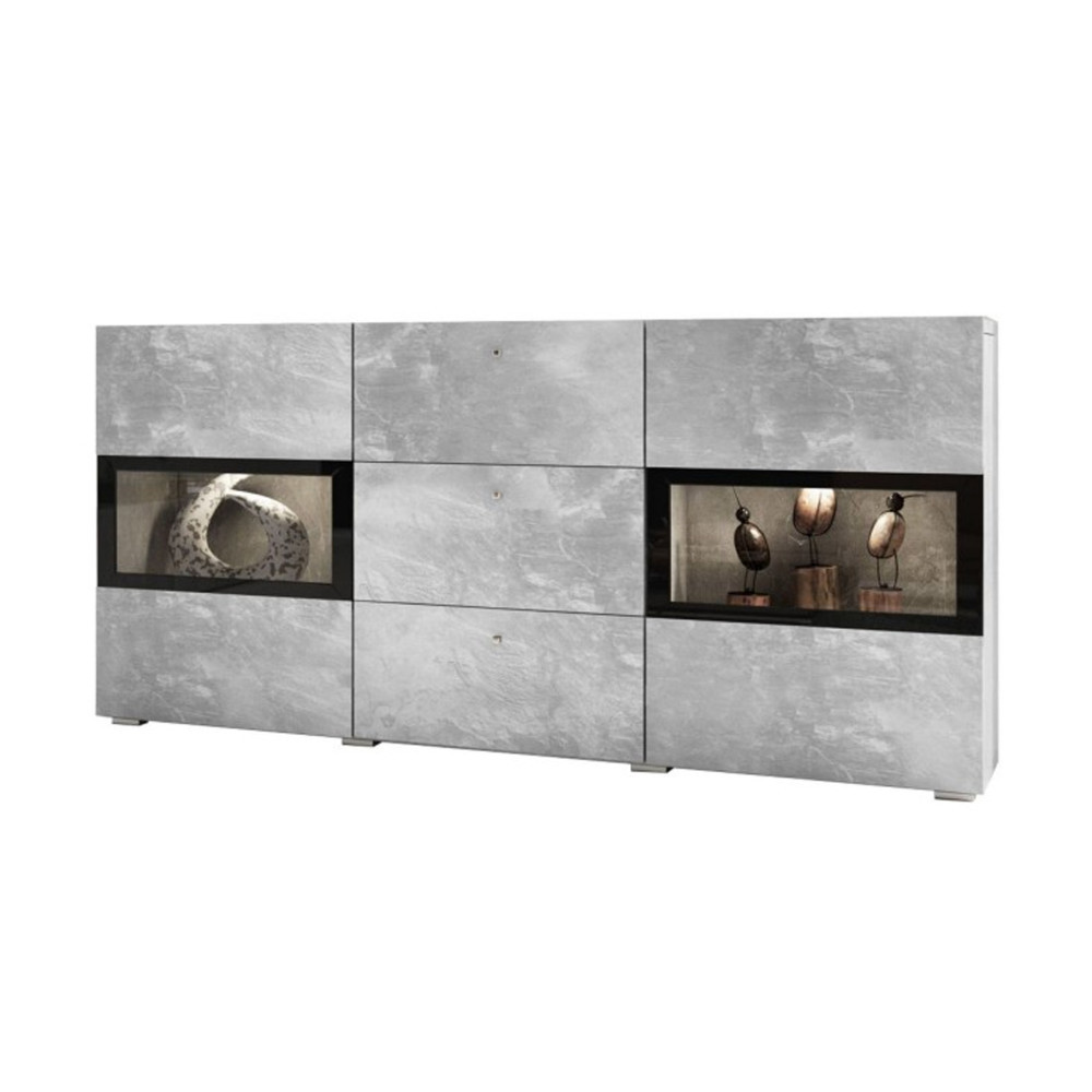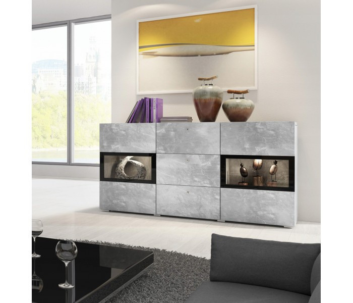 A BAROS komód modern formavilágával és kőhatású, stílusos kivitelének köszönhetően garantáltan jó választás lesz nappalijába. Bútorlapból készül, részben üvegezett ajtókkal. A két oldalsó ajtó mögött további 1-1 polc található.