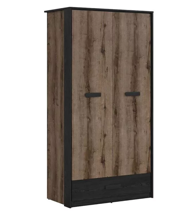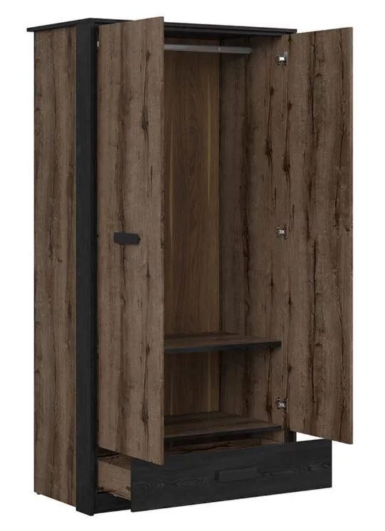 A Kassel hálószoba bútorcsalád különlegességét a sötéttölgy - kolostor tölgy színkombinációnak illetve a modern fogantyúknak köszenheti. A tölgy mintázata a természet közelségének érzetét csempészi a hálószobába. A gardrób két nyílóajtóval és egy fiókkal van felszerelve. A nyílóajtók mögött a mándli rúdon kívül egy polc is elősegíti a rendszerezést. A kollekció többi eleméért görgess le a Kapcsolódó termékek részhez.
