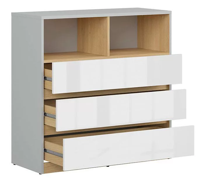 Nandu 3 fiókos komód. A Nandu egy igazán fiatalos bútorcsalád, mellyel bátran berendezheti hálószobáját, nappaliját vagy épp gyermeke szobáját. Mintás változatai vidámságot csempésznek az egyébként modern, üde szín-és letisztult formavilágú megjelenésébe.