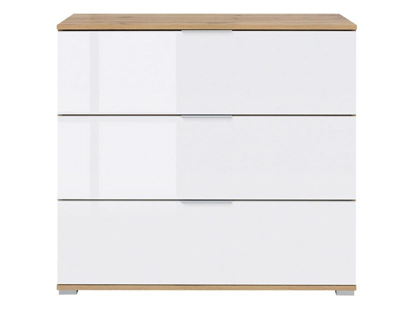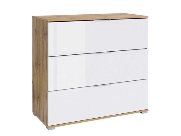 Könnyed, egyszerű forma azok számára, akik szeretik a modern bútorokat. A tölgyfa erezetét hangsúlyozó bútorlapból készült korpusz sugározza a természetességet, mellyel tökéletes összhangban vannak a magasfényű, fehér elemek.