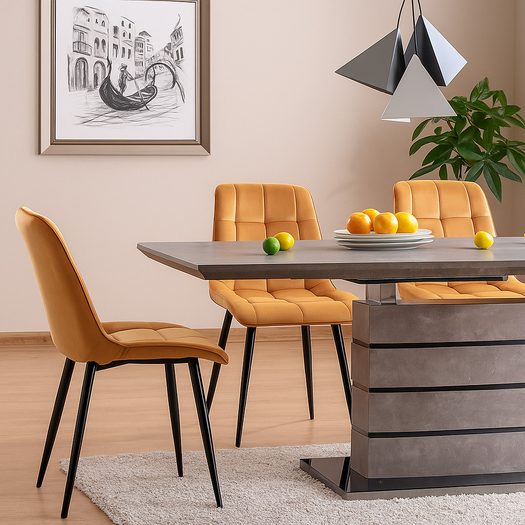 (Kínálatunkban megtalálható a Chic szék más változatokban is: arany lábakkal / króm lábakkal / vízlepergetős bársonyhatású szövetkárpittal / szövetkárpittal / bárszék formában)