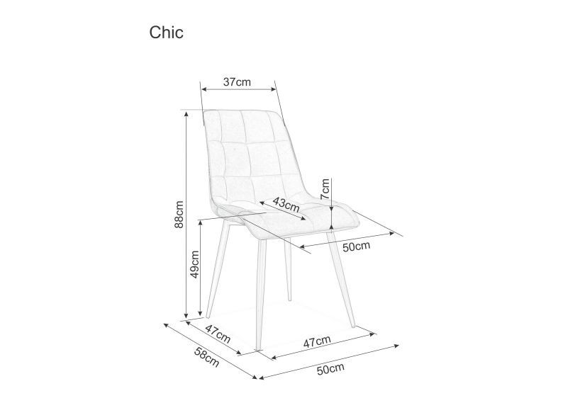 (Kínálatunkban megtalálható a Chic szék más változatokban is: arany lábakkal / fekete lábakkal / vízlepergetős bársonyhatású szövetkárpittal / szövetkárpittal / bárszék formában)