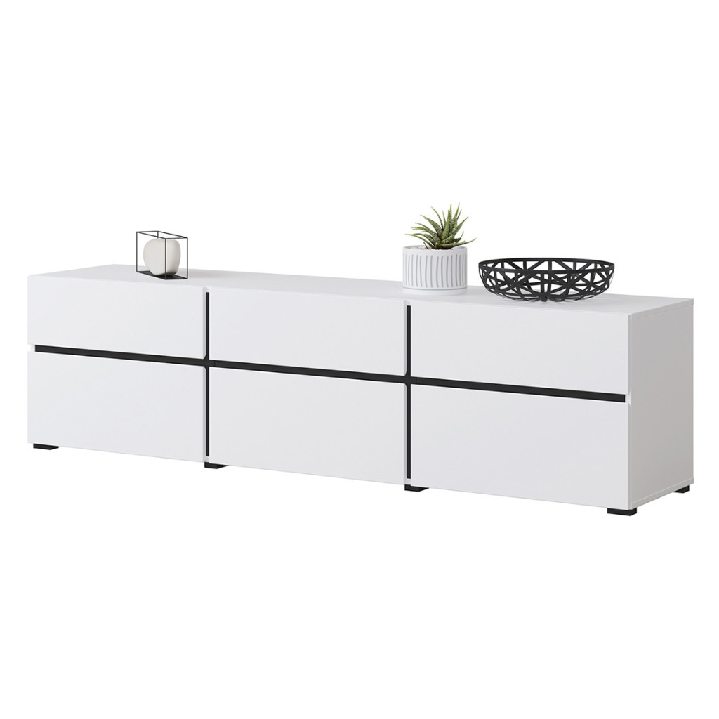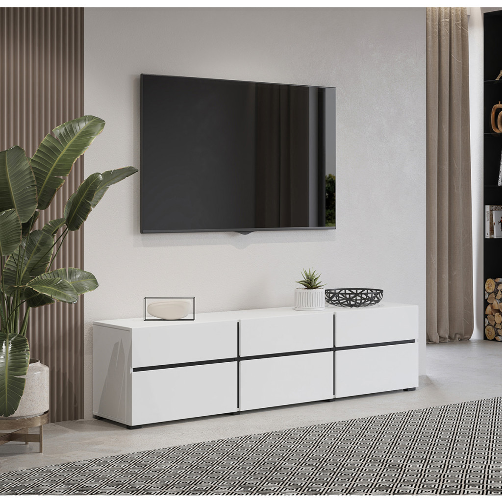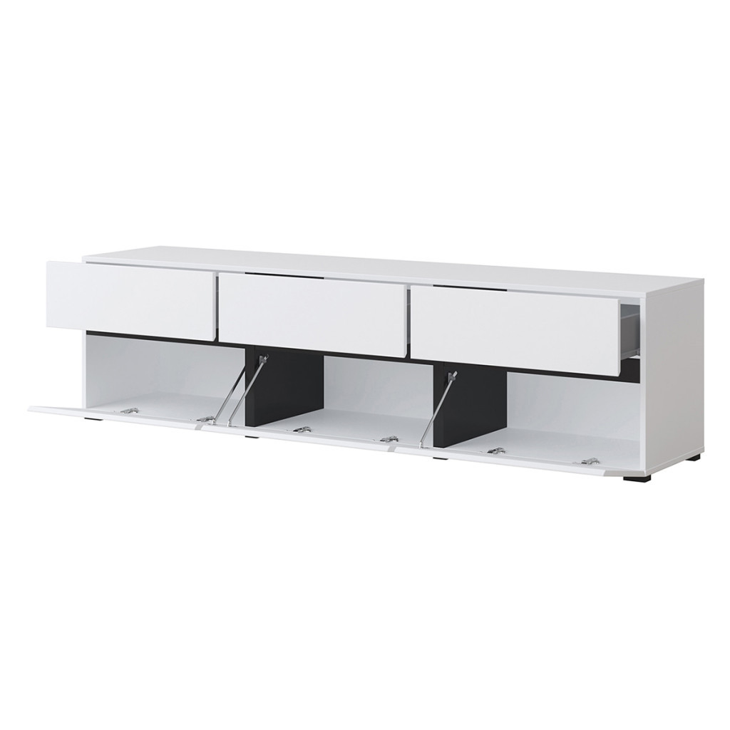 Ez a három lenyíló ajtós, három fiókos TV állvány a nappalija központi elemévé válhat. Praktikus, látható fogantyú nélküli kivitel, mely abszolút beleolvad környezetébe.