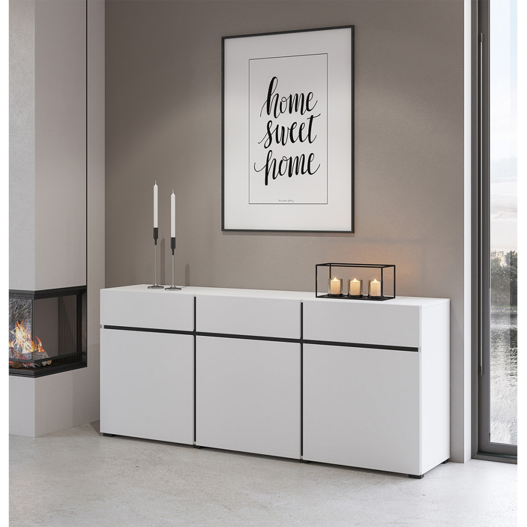 A kollekció három ajtós három fiókos komódja igazi megoldást nyújt a rendszerezésben.