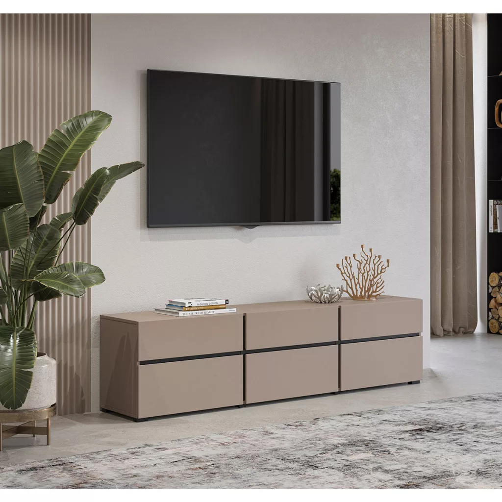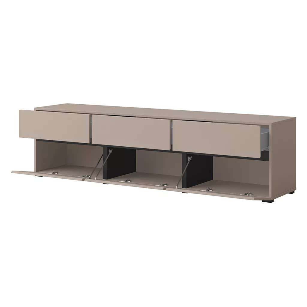 Ez a három lenyíló ajtós, három fiókos TV állvány a nappalija központi elemévé válhat. Praktikus, látható fogantyú nélküli kivitel, mely abszolút beleolvad környezetébe.