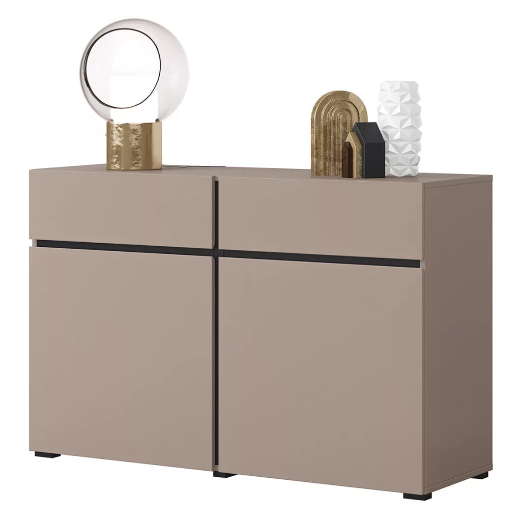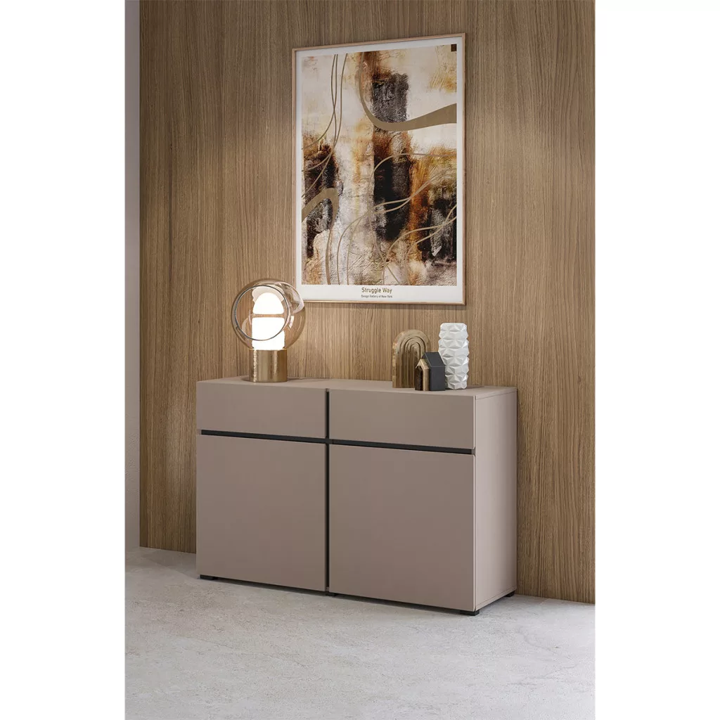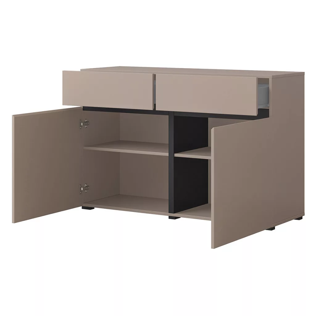 A kollekció két ajtós, két fiókos komódja tökéletes választás, hiszen pompás rendszerezési alternatívát kínál otthonában.