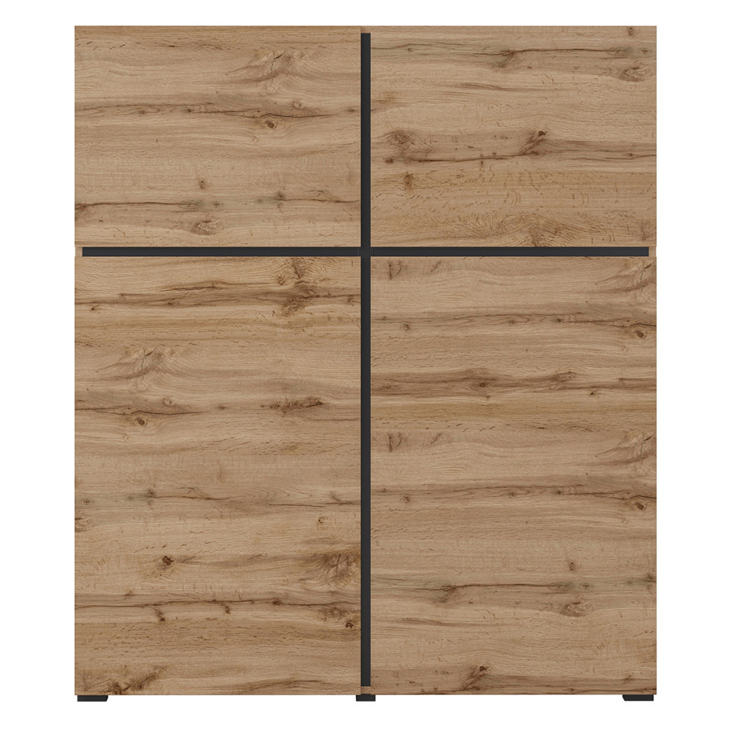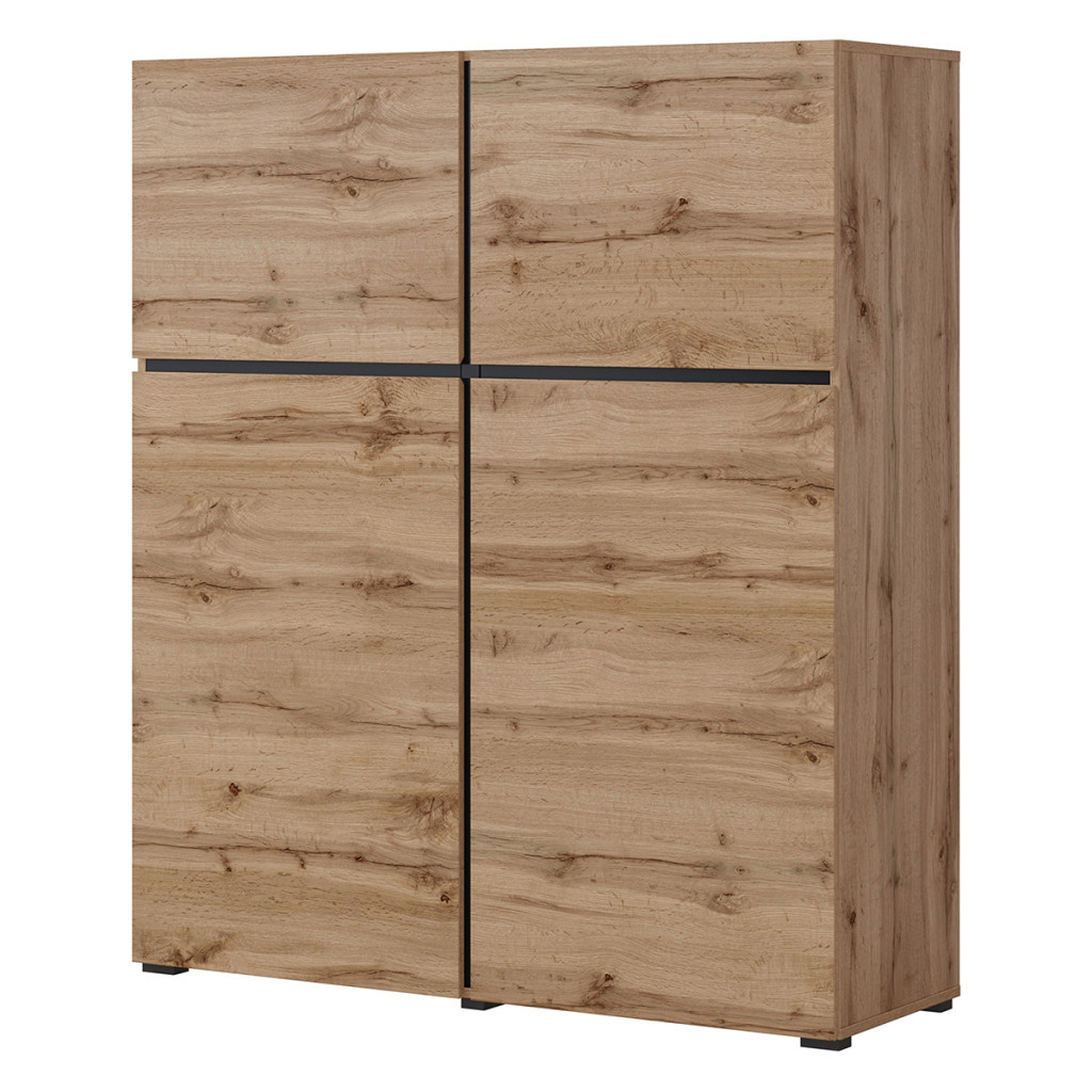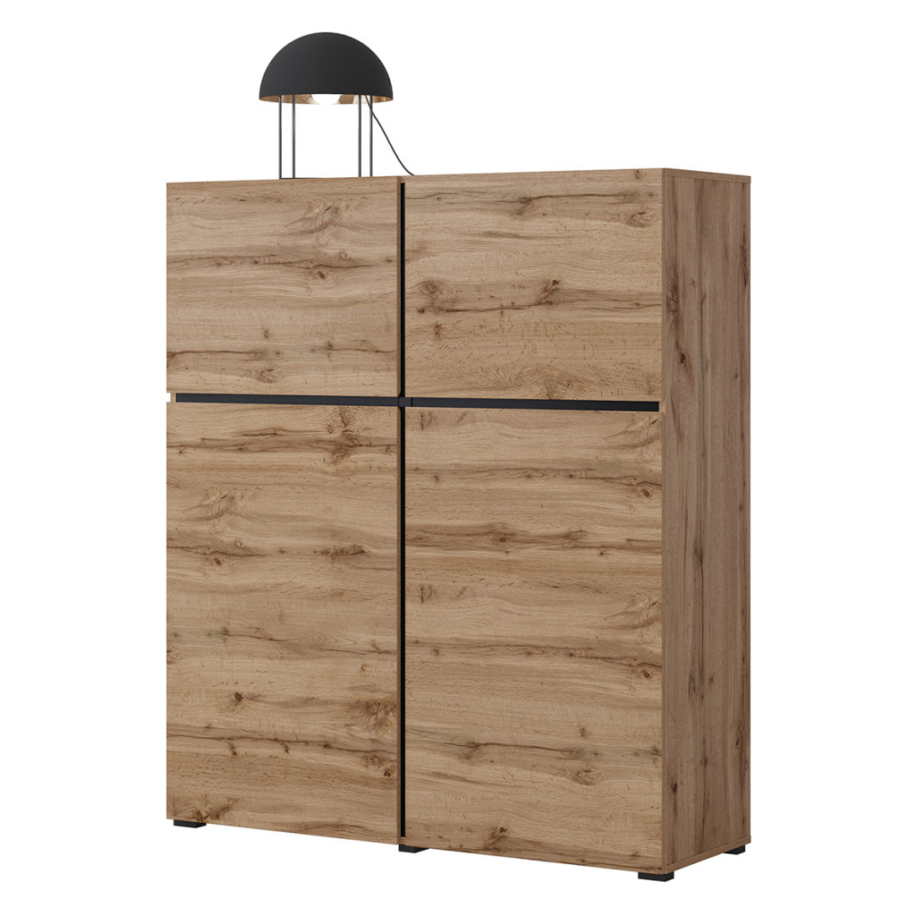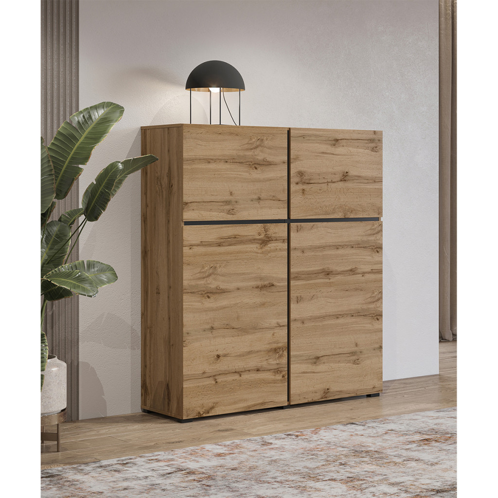 A kollekció négy ajtós komódja praktikus megolád lehet akár a nappaliba használja akár a hálószobában. Praktikus, látható fogantyú nélküli kialakítás.