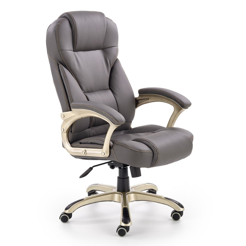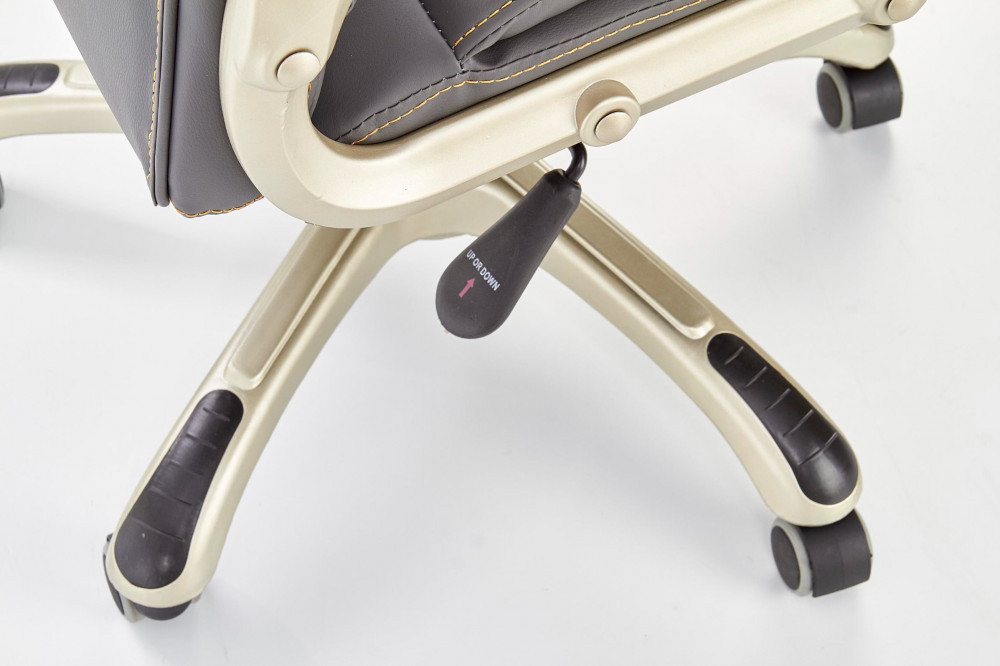 Kényelmes, ekobőr kárpitozású forgószék állítható magassággal. Lábai arany/bronzos színhatásúak, gumi bevonatú kerekekkel. TILT mechanizmussal szerelt, dönthető funkcióval is rendelkezik.