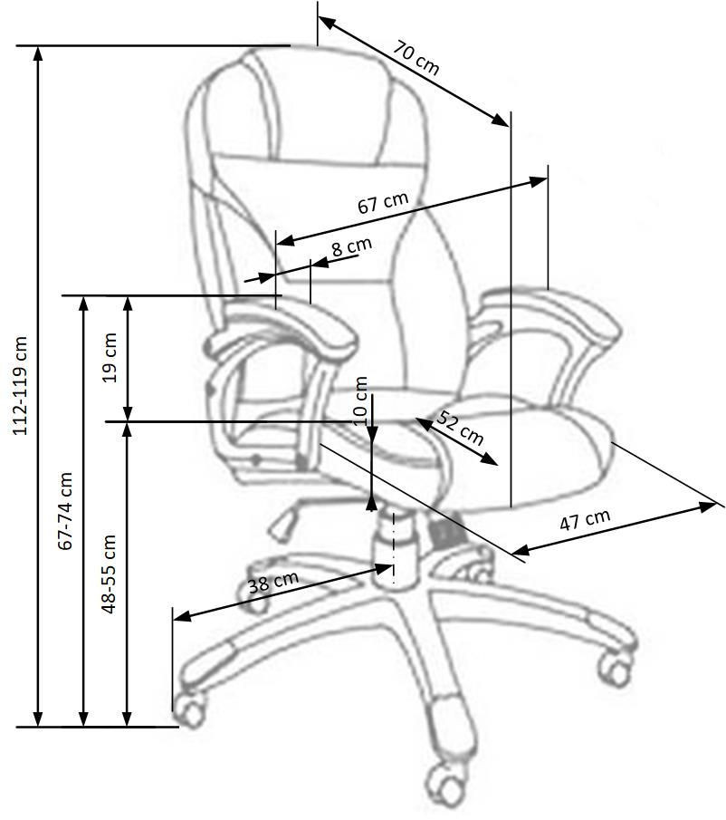 Méretek (Szé-Ma-Mé): 67 x 112-119 x 70 cm
