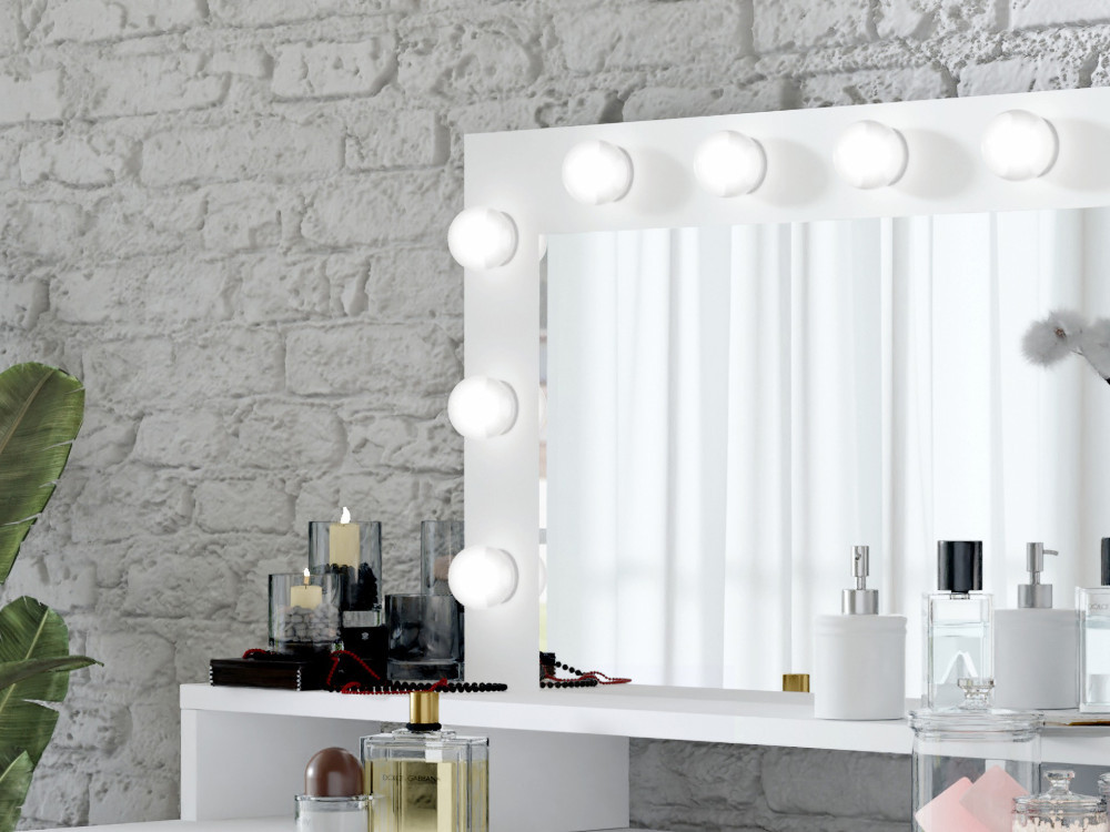 A gömbalakú LED-világítás a tükör körül pompás megjelenést és persze kiváló megvilágítást ad,