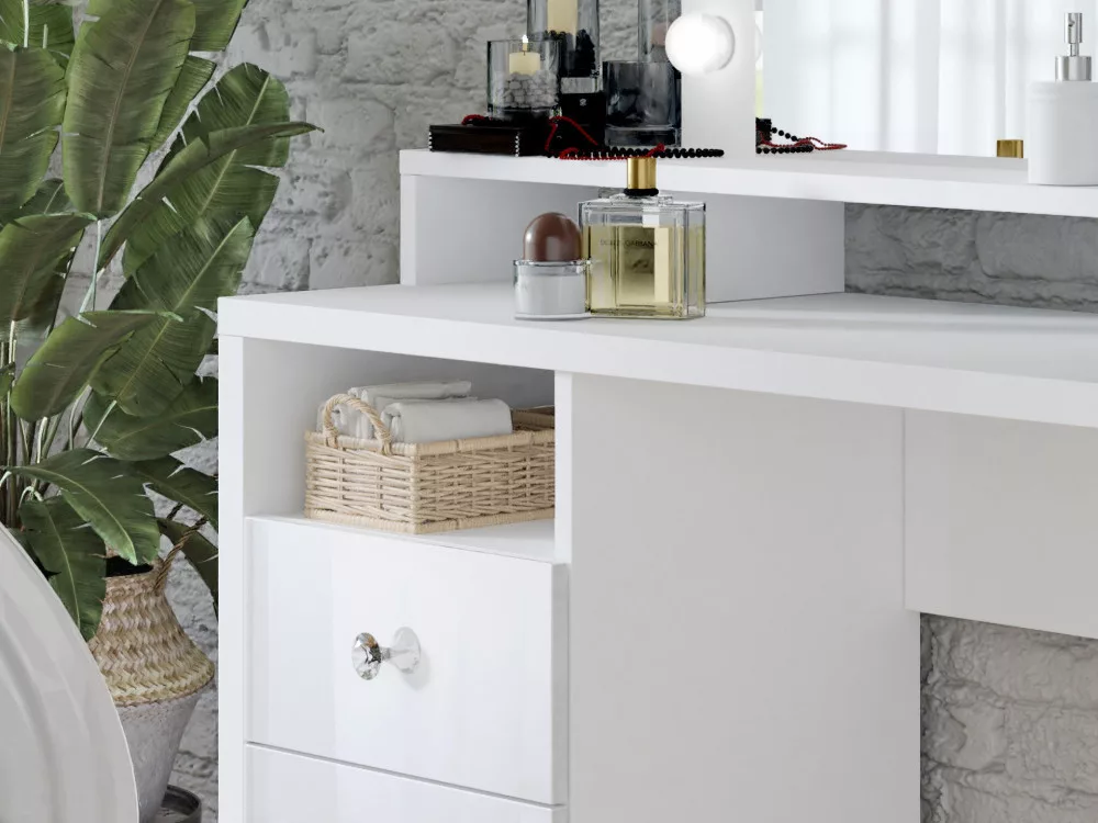 3 fiókjában pedig bőséges tárolóhely kínálkozik. Fogantyúi tökéletesen passzolnak fényűző megjelenéséhez.