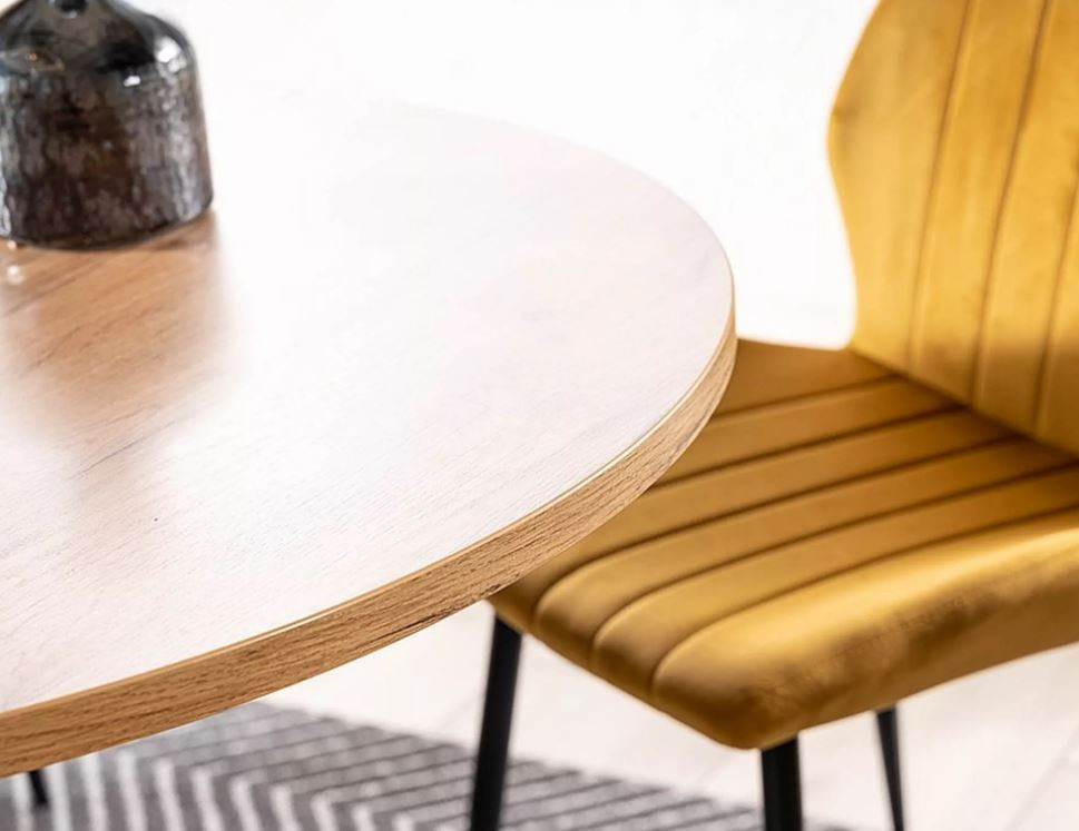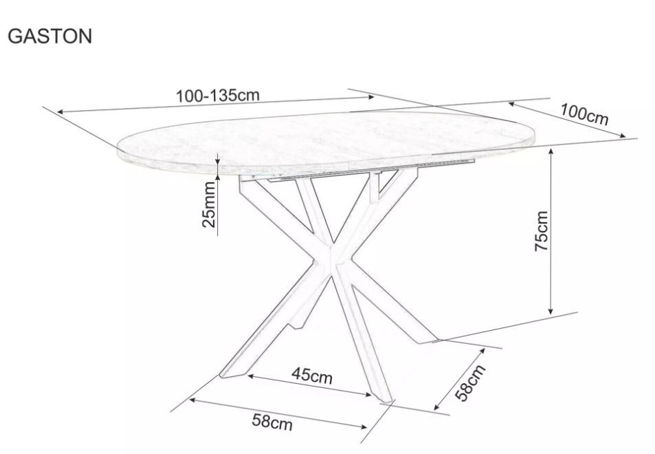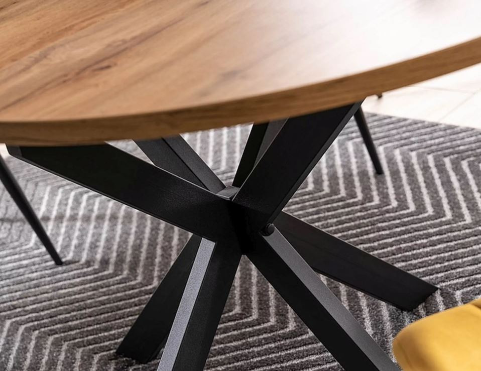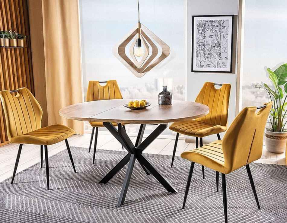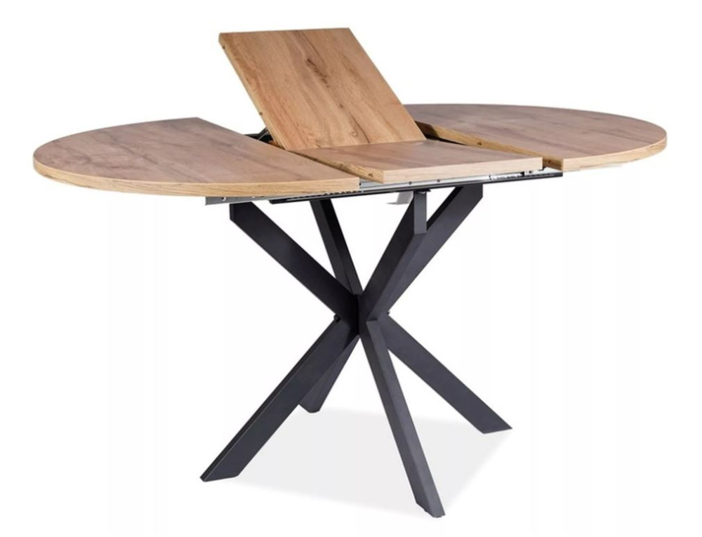 Kerek étkezőasztal többféle színben rendelhető laminált lapból készült asztallapal és fekete fémlábakkal. Dizájnos kialakítása figyelemfelkeltő, vonzza a tekintetet. A legjobb benne, hogy mindezek mellett bővíthető, így pár mozdulattal 135 cm-es felülethez jutunk, amely mellett 6 ember is kényelmesen elfér.
