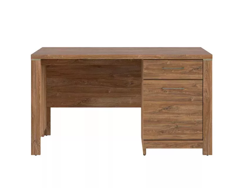 Ez a kollekcióhoz tartozó íróasztal egyszerre funkcionális és látványos. A meleg faerezetű felület barátságos, mégis professzionális hangulatot áraszt, így ideális választás dolgozószobába, ifjúsági szobába vagy otthoni munkasarokba.