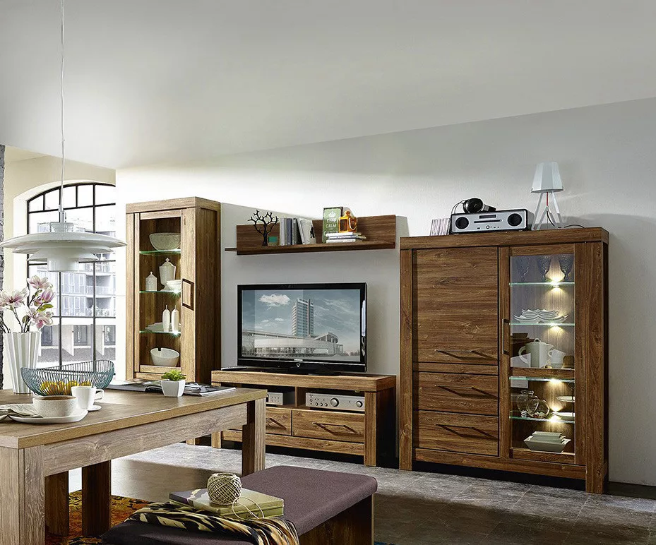 Ez a bútorcsalád nem rejtegeti a karakterét – inkább kihangsúlyozza! A markáns faerezetű frontok és a gondosan elrendezett elemek olyan hangulatot teremtenek a nappaliban, ahol egyszerre van jelen a melegség, a funkcionalitás és a dizájn.