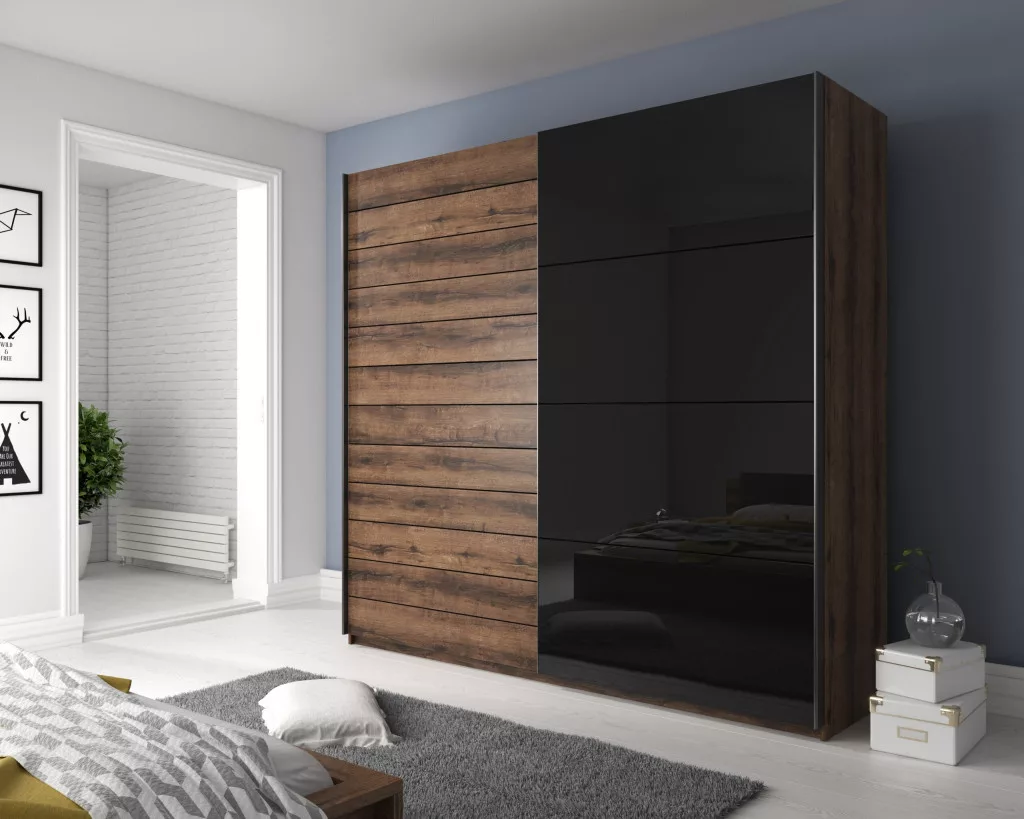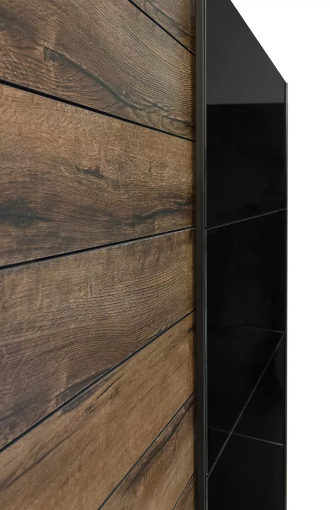 A galaxy gardrób belső szerkezete is praktikus, könnyedén rendszerezheti benne ruháit. A fekete fényes front kiegészíti a sötét fa hatását.