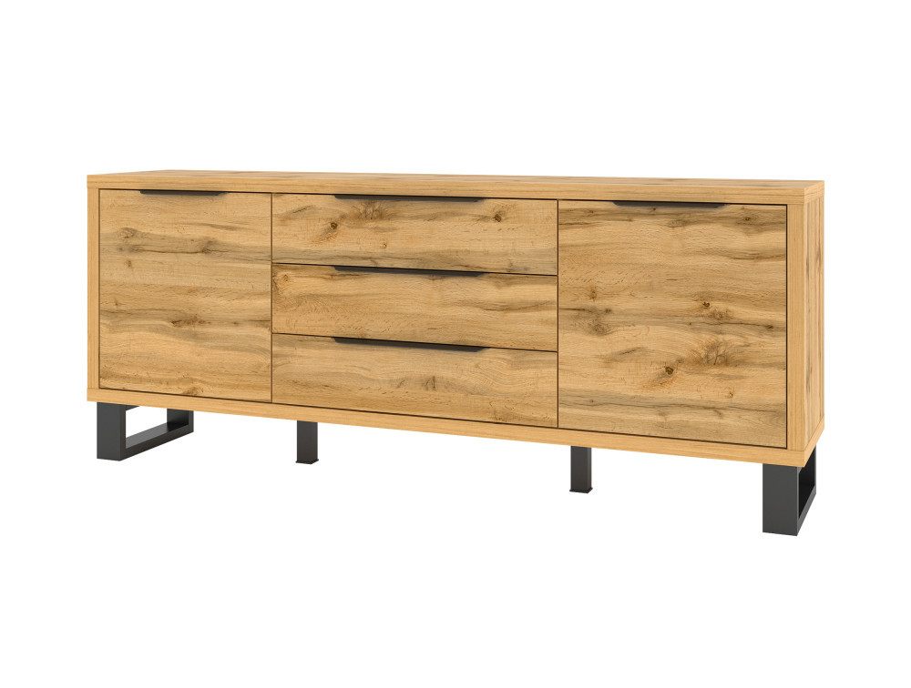 A nagyméretű komód összesen 3 fiókkal és 2 zárt tárolórésszel rendelkezik, így praktikus választás is, hiszen bőséges tárolóhelyet kínál.
