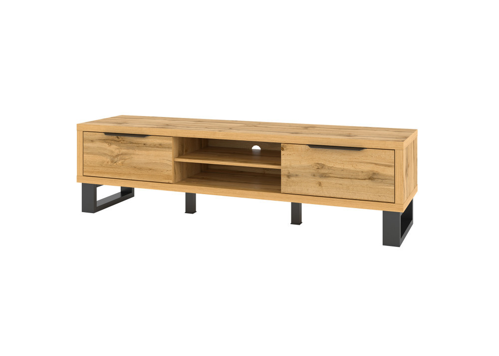 A széles TV-állvány 2 lenyíló ajtós tárolórésszel és egy nyitott, polcos résszel rendelkezik, melynek hátulján kábelvezető nyílás kapott helyet, ami megkönnyíti elektronikai eszközei kábelelvezetését.