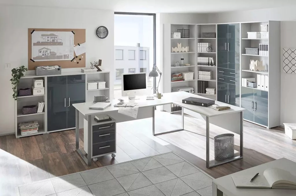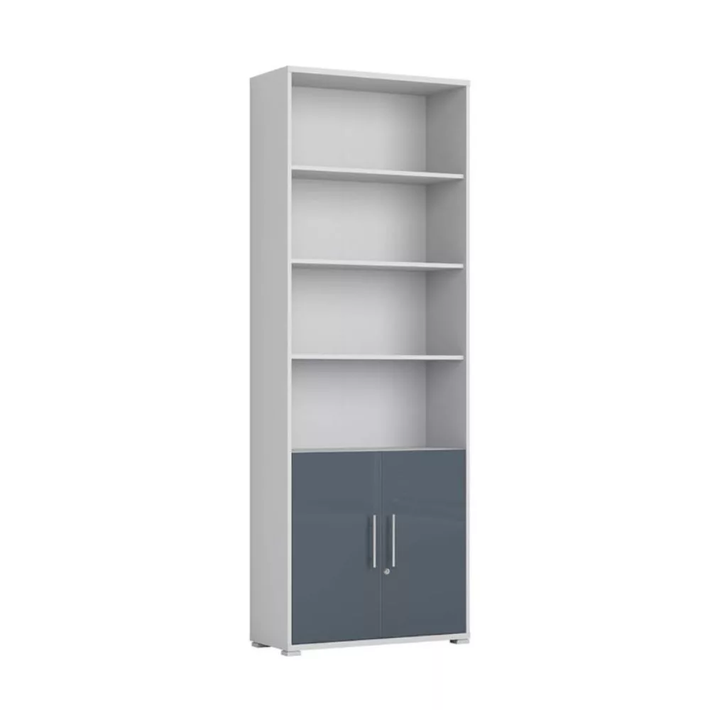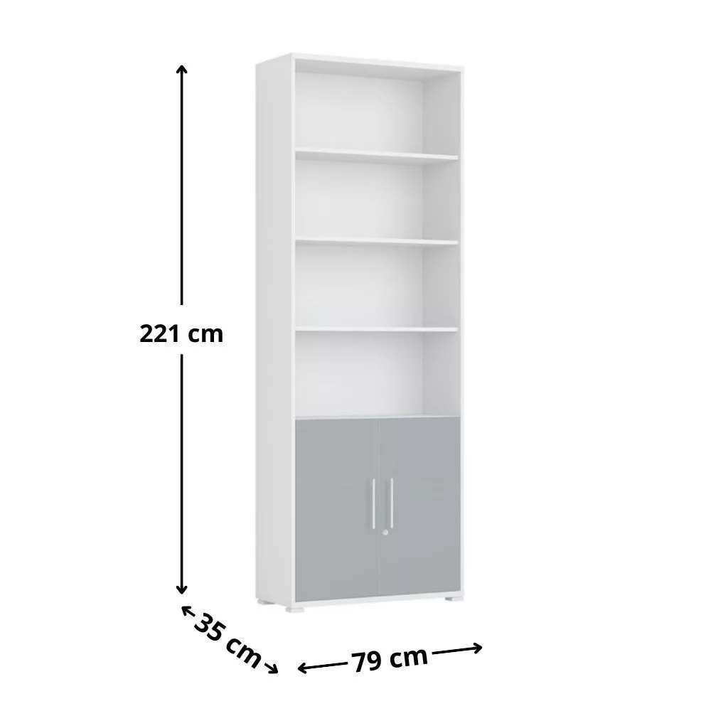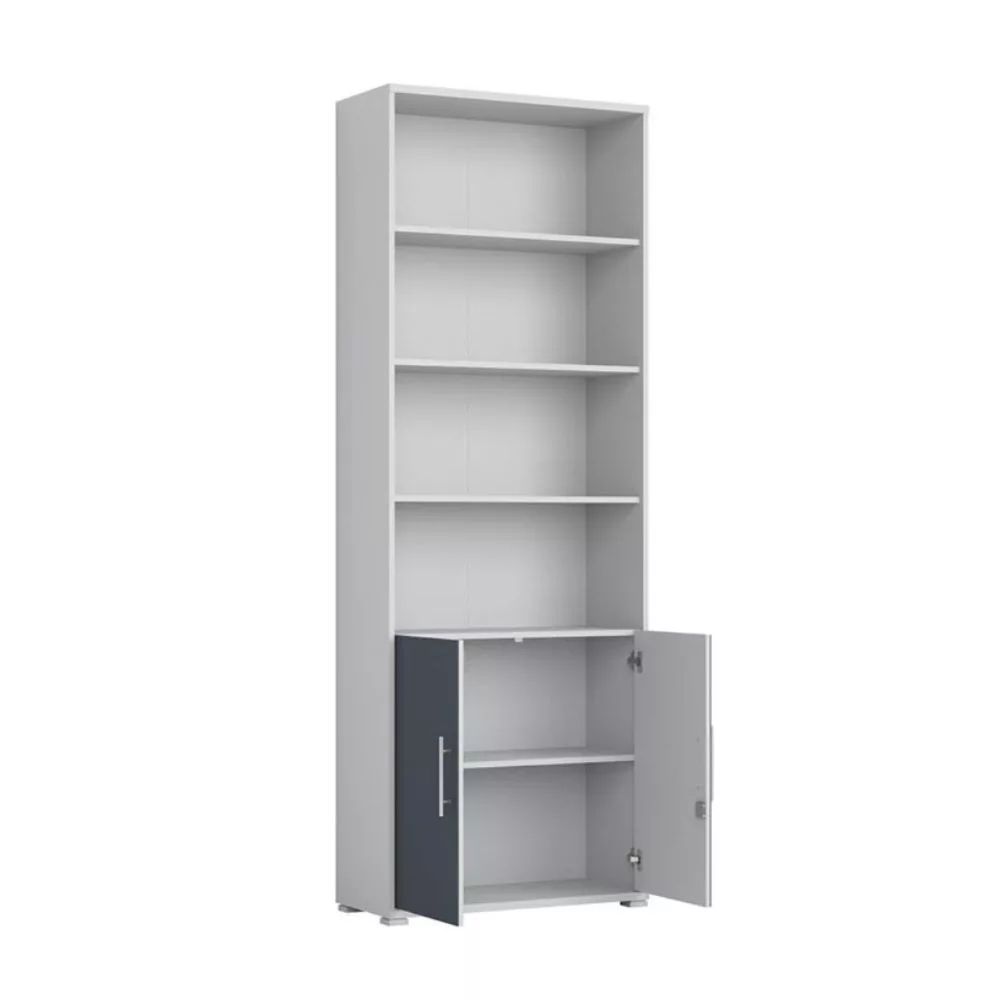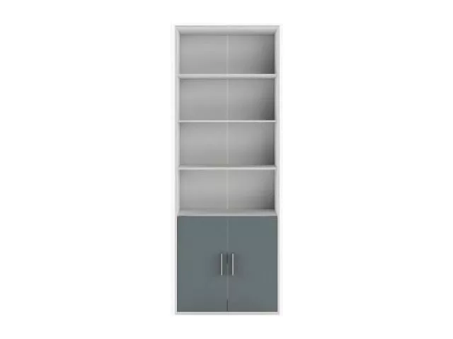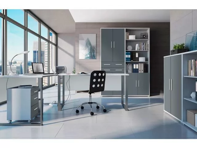 A KABI irodai bútorcsalád stílusos és modern megoldást nyújt. Az antracit színeket ízlésesen egészítik ki a hamuszürke (halványszürke) részek. A bútorcsalád elemlistájában megtalálhatóak a különféle elemek, melyekre egy irodában szükség lehet. A kétajtós polcos szekrény összesen 5 polccal ideális tárolóhelyet kínál.