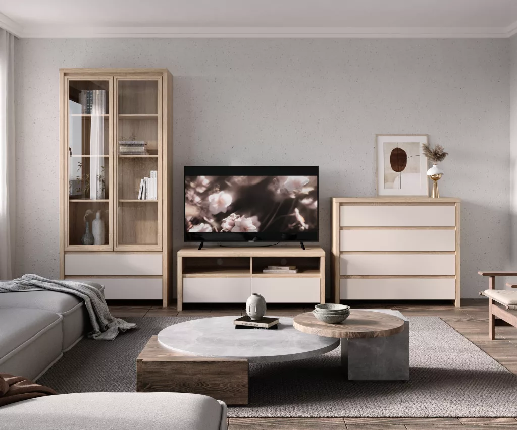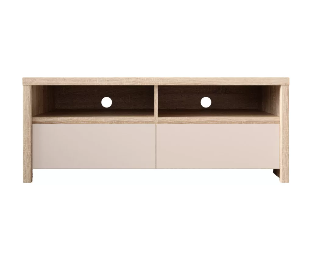 2-fiókos tv-állvány, mely letisztult formavilágával, szögletes vonalaival, fogantyú nélküli designjával nagyszerű választás bárki számára.