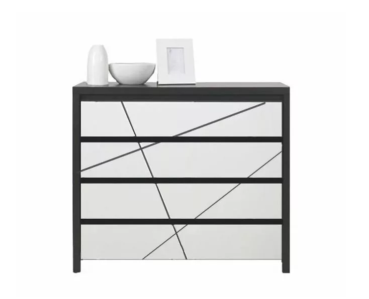 A termékcsalád legújabb színkombinációja minden bizonnyal magával ragadja a figyelmet! A varázslatos wenge és a hófehér színkombináció extravagáns megjelenést kölcsönöz a térnek. Modern kialakítású komód, 4 fiókkal. Remekül mutat a nappaliban, hálószobában. Letisztult formavilágával, szögletes vonalaival, fogantyú nélküli designjával nagyszerű választás bárki számára. A bútorcsalád elemeivel könnyen berendezheted nappalid, hálószobád, irodád vagy gyermeked szobáját.