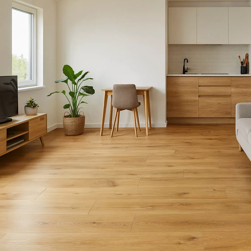 - Természetes fa hatású, meleg tónusú dekor