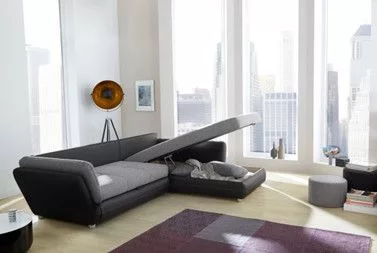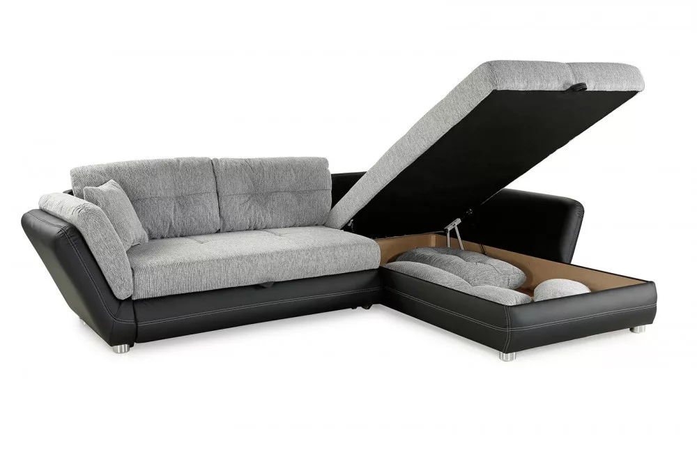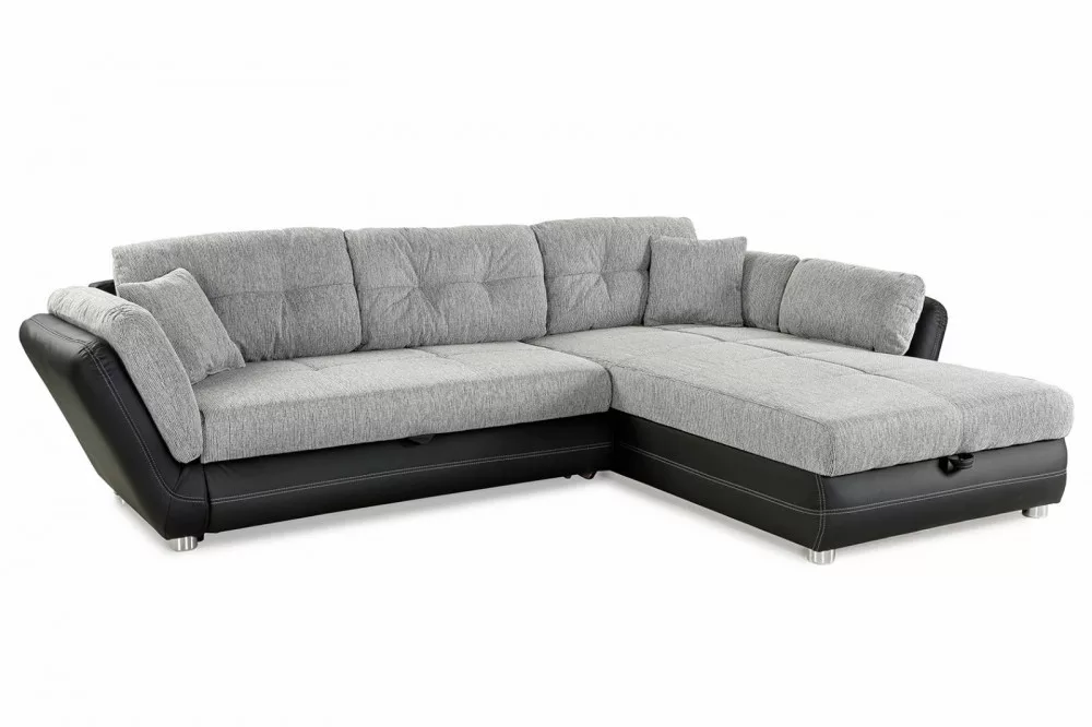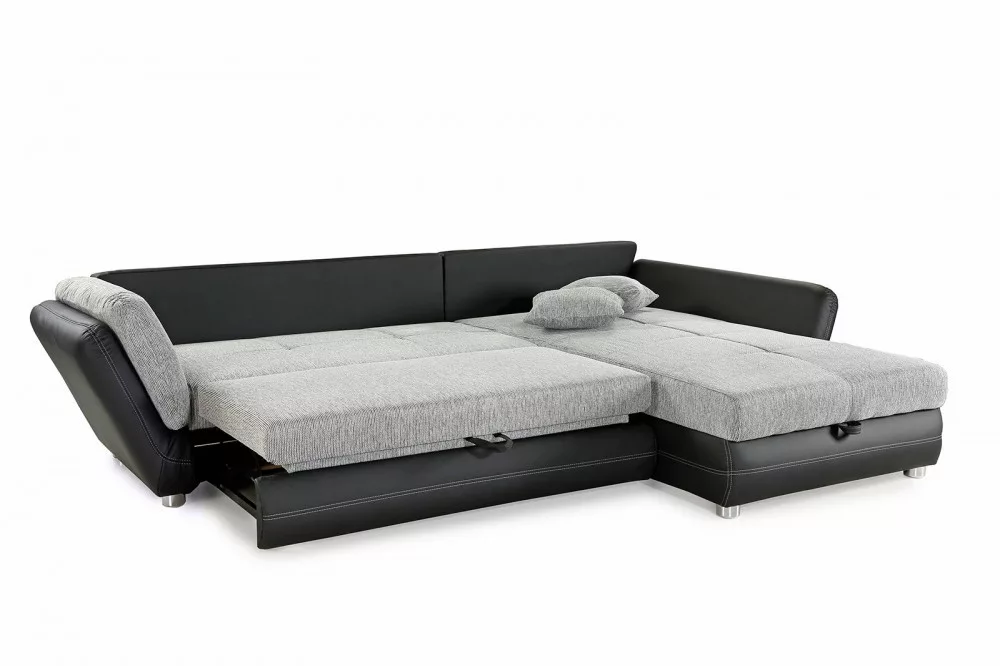 Modern sarokkanapé kiváló minőségű kárpitozással, nosag felfüggesztéssel és poliéterhabbal, amely kellemes ülés és fekvő kényelmet biztosít. Az ottománba integrált ágydoboz elegendő tárolóhelyet kínál. A kanapét kinyiva hatalmas ágyá lehet alakítani. A hátlap, amelyet valódi szövet borít, szabadon elhelyezhető a szobában. A kanapé univerzális, azaz szabadon választható, hogy balos, vagy jobbos állásban szerelik össze. A szállítási csomag 3 nagy, 2 közepes és 2 dekoratív párnát tartalmaz.