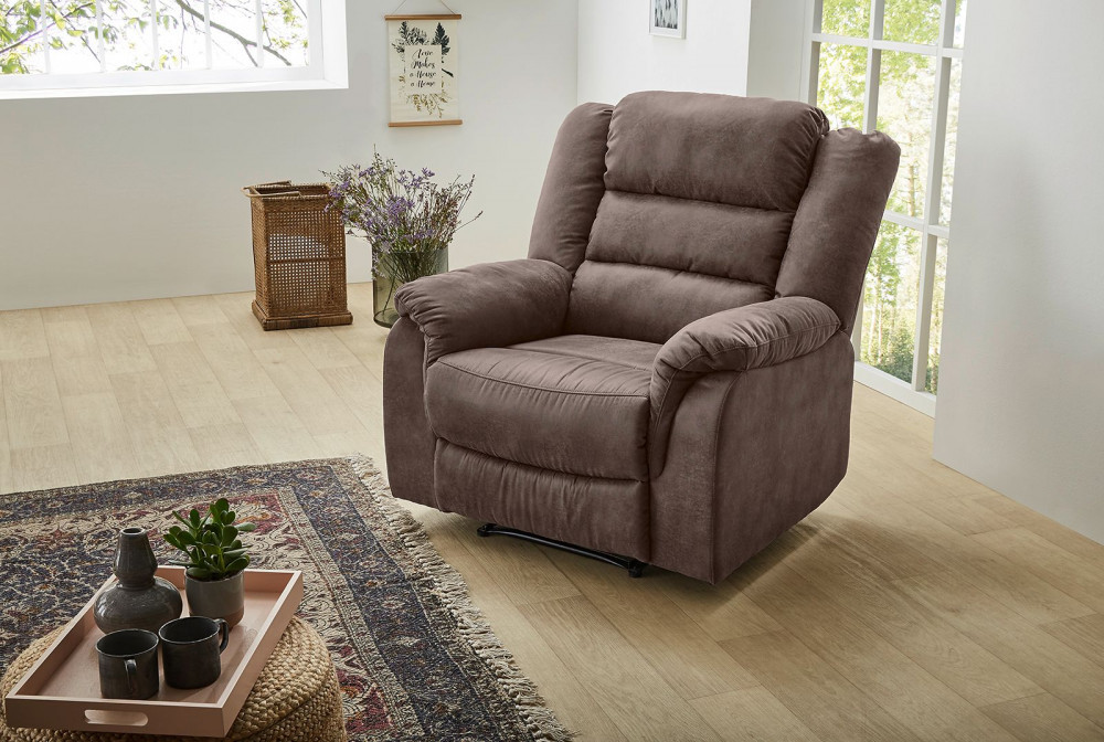 Az elegáns megjelenésű, félautomata relax funkcióval ellátott Maryland fotel garantáltan a nappali legkedveltebb bútordarabja lesz. Állítható lábtartó és háttámla biztosít személyre szabott pihenést, maximális üléskomfortot. Puha, kerekded formáival, divatos vintage barna szövetével az otthon melegének hangulatát növeli.