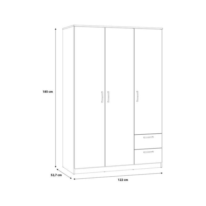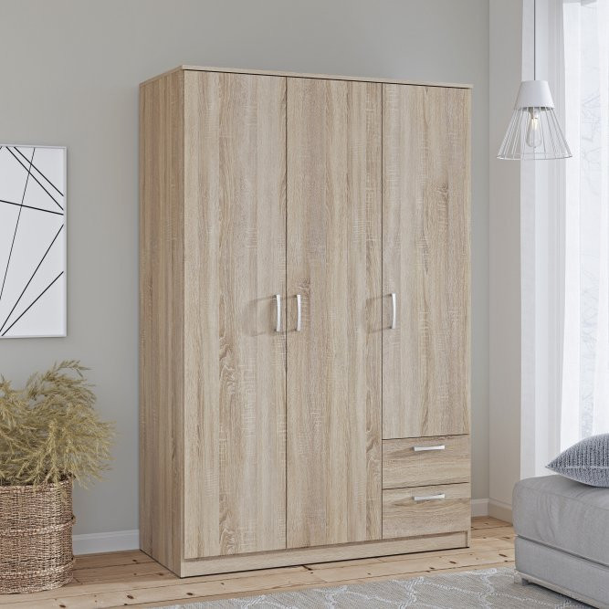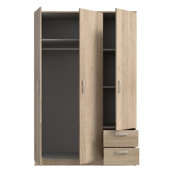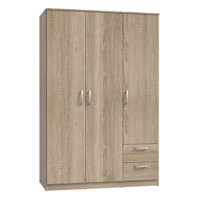 Kompakt méret, mégis bőséges tárolókapacitás – ez a háromajtós gardróbszekrény ideális választás kisebb hálószobákba, vendégszobákba vagy ifjúsági enteriőrökbe. A letisztult sonoma tölgy szín időtlen eleganciát sugároz, amely jól illeszkedik klasszikus és modern bútorokhoz egyaránt.