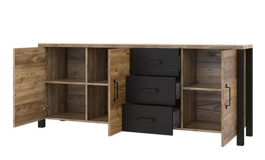 A modern stílus találkozása a természet színeivel. Ez jellemző az Olin komódra is. Ezt a könnyed formavilágot egészíti ki három nyíló ajtós szekrény kombinálva három fiókkal. A fogantyúk formája teljes mértékben beleillik abba az indusztriális összképbe, melyet ez a bútorcsalád képvisel.
