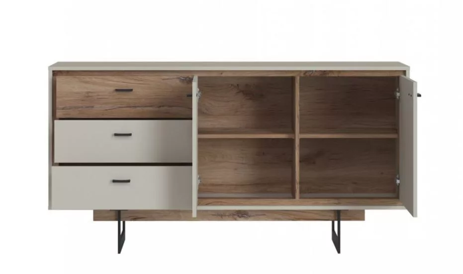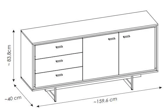 A tálaló nagyon hatékony fémkerettel rendelkezik, amely lehetővé teszi a bútorok egyedi vizuális hatásának elérését és a funkcionalitás növelését, különösen kis helyiségekben. A komódot érdemes a falhoz rögzíteni, hogy ne boruljon fel. Divatos stílust képvisel, amely tökéletesen illeszkedik a modern és az ipari dekorációhoz.