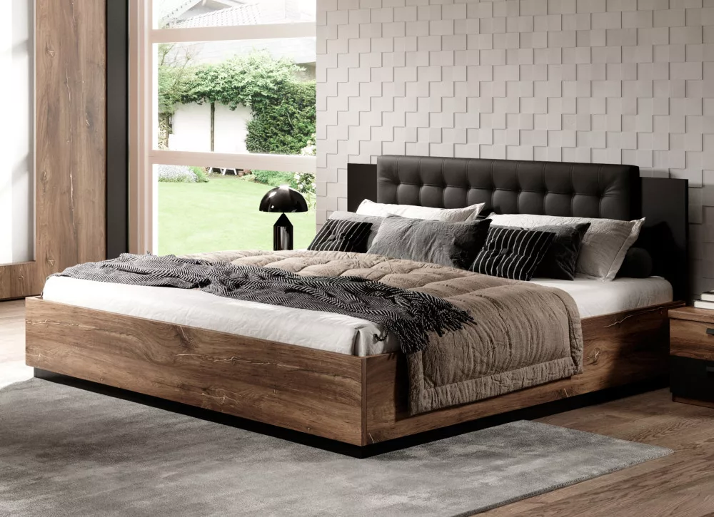 A SIGMA kollekció egyedülálló, naturális és modern elemeket ötvöző, részletgazdag bútorcsalád. A sötét, Flagstaff tölgyhatású, laminált bútorlap különlegessége a megbúvó, arany színű, antik hatású dekormintázatban rejlik. A fekete fejtámla és a szintén fekete, szivacsos, ekobőr borítású fejvég ízlésesen egészítik ki a kompozíciót. Ha pedig ez nem lenne elég, a praktikumot sem nélkülözi, hiszen keretes ágyrácsa gázrugók segítségével könnyedén nyitható, így nagyméretű tároló kínálkozik az ágyneműk számára.