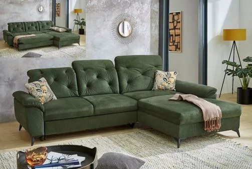 Hangulatos kanapé vendégággyal és relaxációs funkcióval. A kiváló minőségű hab a hullámrugóval kombinálva tökéletes ülés- és alvás komfortot biztosít. Hátulja valódi szövettel borított, így bárhol elhelyezhető a lakásban. A kanapéhoz tartozik kettő darab kisméretű díszpárna. A három fejtámla racsnis szerkezettel állítható.