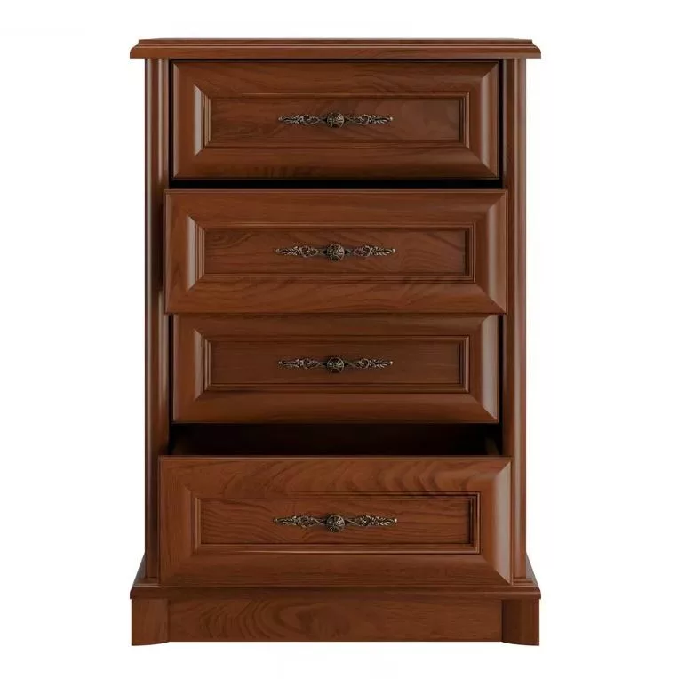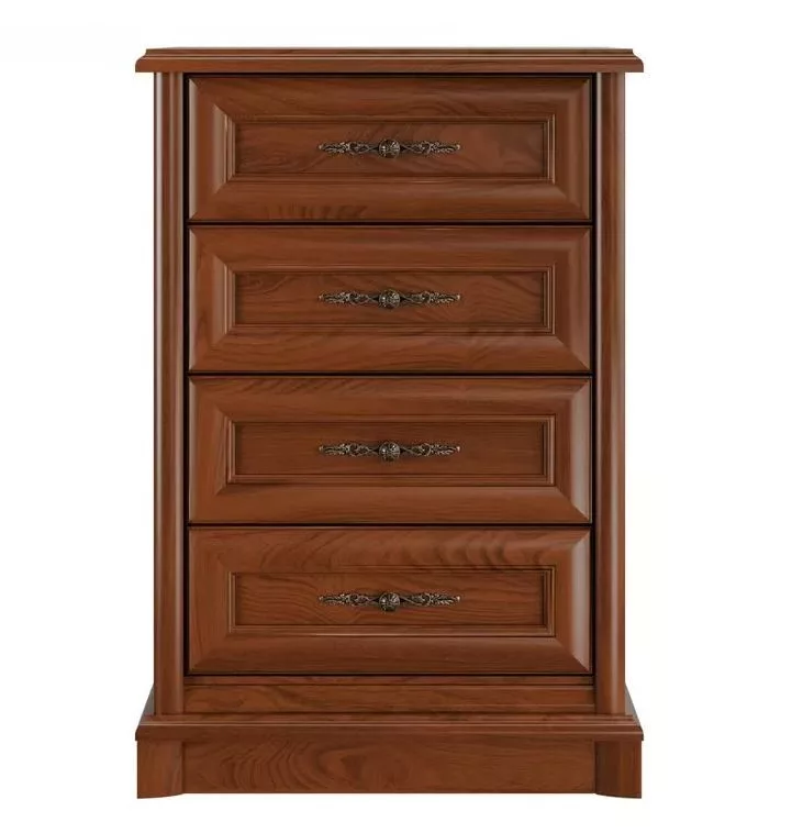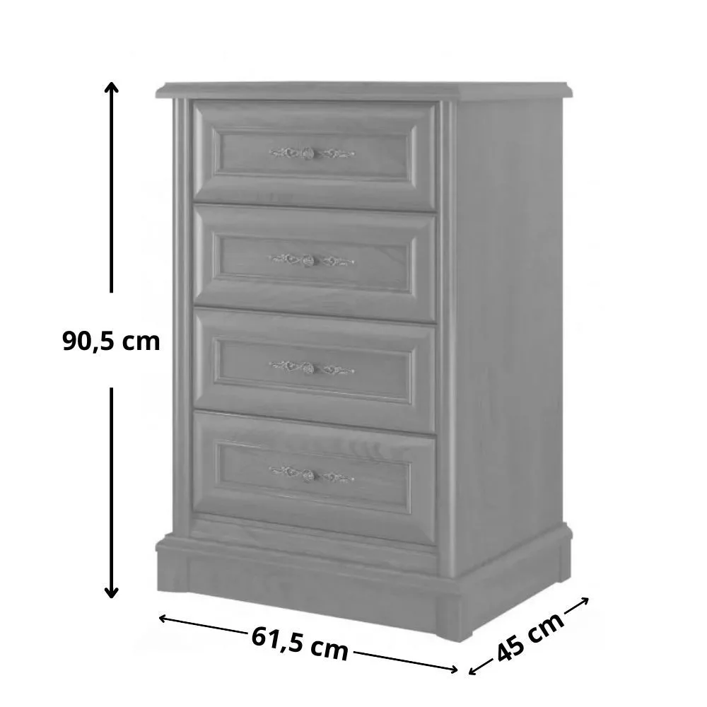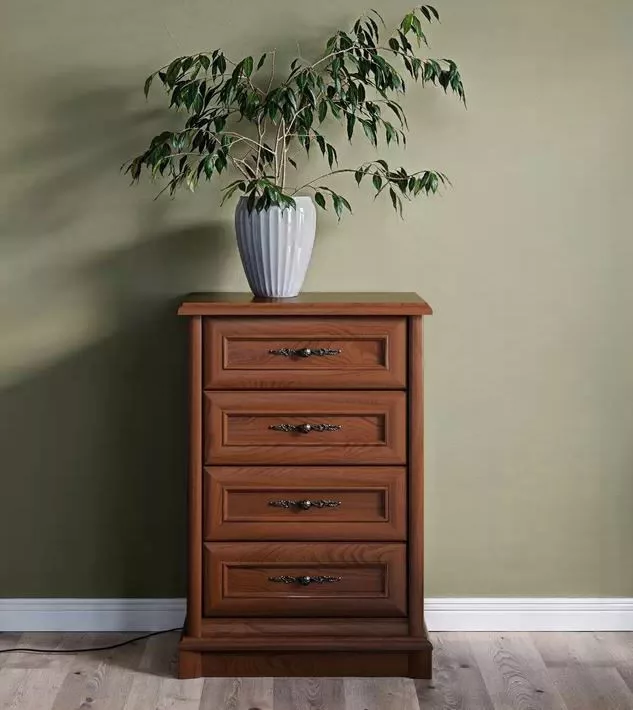 A Szófia termékcsaládot a lábazat, a szélek és ajtók igényes kialakítása jellemzi. Mart szélek és patinás, fém fogantyúk a dominánsak. A termékcsalád négy fiókos komódja teljes értékű kiegészítője lehet a nappalijának. Fokozza a kényelmet a fiókok csendes záródása. Rendezze be otthonát a Szófia bútorok kellemes gesztenye színével és hangolódjon a természet közelségére.