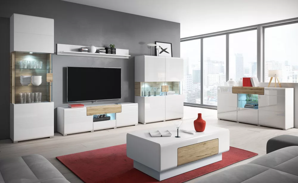 A Toledo bútorok letisztult, mégis modern stílusa melegséget és eleganciát csempész nappalijába. A fehér / San Remo tölgy kombináció szemet gyönyörködtető végeredményt hoz létre.