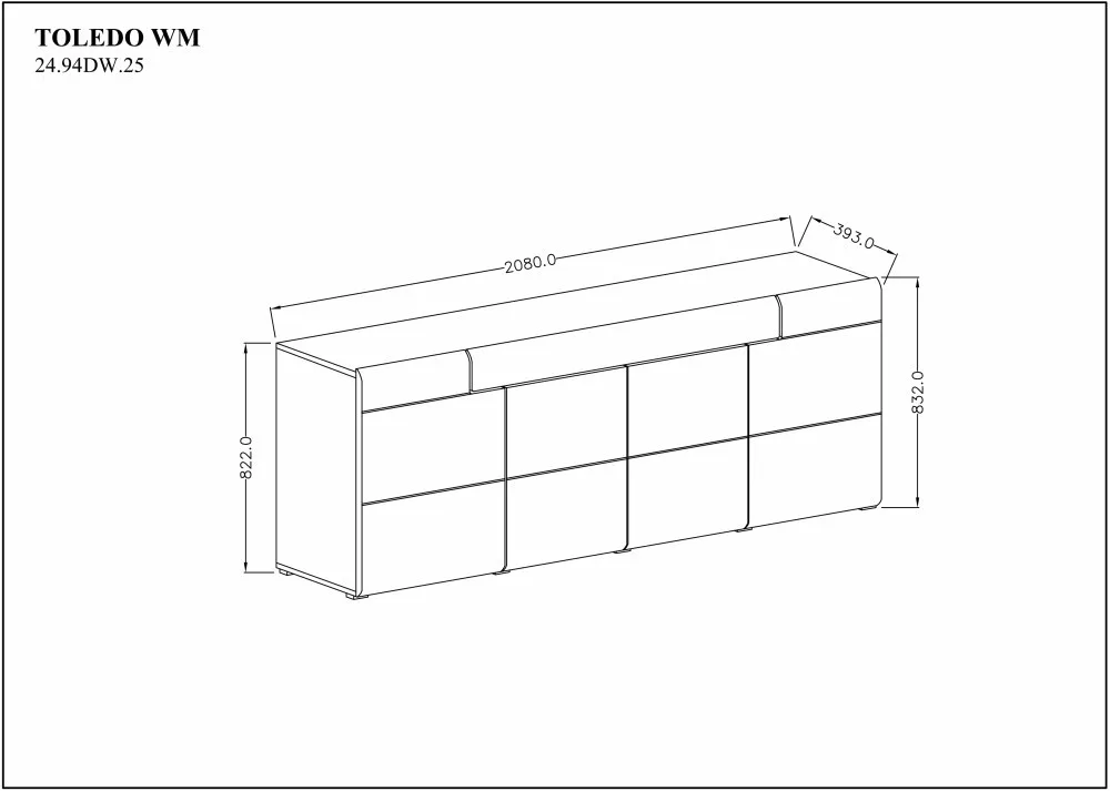 A nagyméretű komódban bőséges tárolóhely kínálkozik; 1 fiók, 4 ajtó és 6 polc található benne.