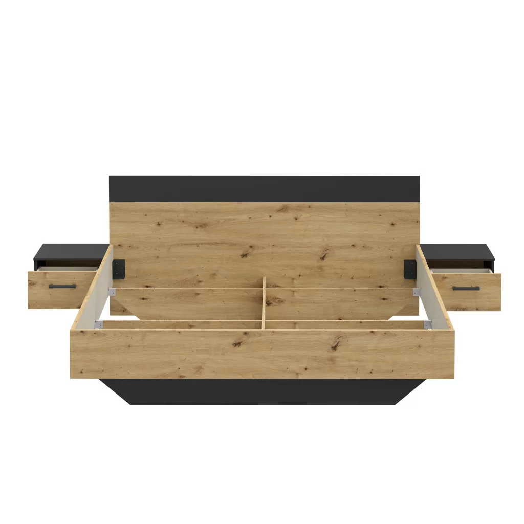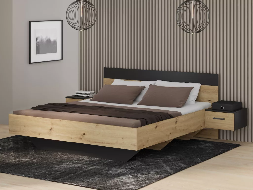 A képen látható Tasmania franciaágy modern és funkcionális megoldást kínál minden hálószobába. A kontrasztos tölgy és fekete színkombináció elegáns, mégis karakteres megjelenést biztosít, így tökéletesen illik kortárs enteriőrbe. A magas fejtámla nemcsak dekoratív, hanem kényelmes háttámaszként is szolgál olvasás vagy tévénézés közben.