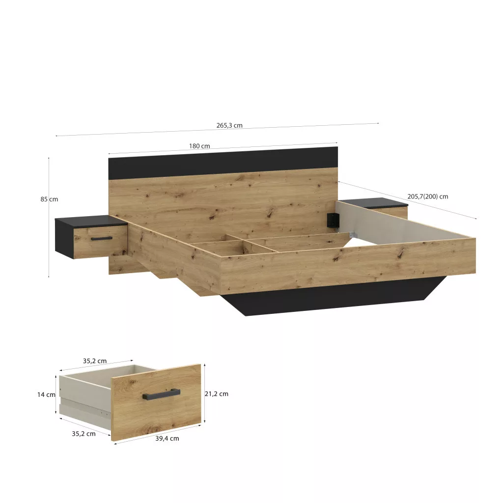 A kétoldali beépített éjjeliszekrény praktikus tárolóhellyel és fiókokkal könnyíti meg a mindennapokat, míg az ágykeret robusztus kialakítása garantálja a stabilitást és hosszú élettartamot. Ideális választás azok számára, akik stílust, kényelmet és funkcionalitást keresnek egyetlen bútordarabban.
