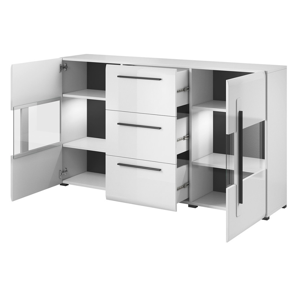 Egy két ajtós, három fiókos vitrines komód a modern elegancia megtestesítője. Praktikus választás dekortárgyai megjelenítésére, vagy dolgai rendszerezésére.