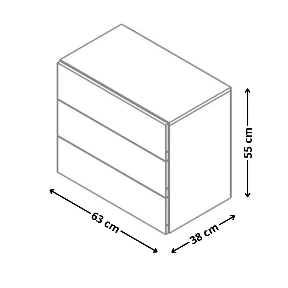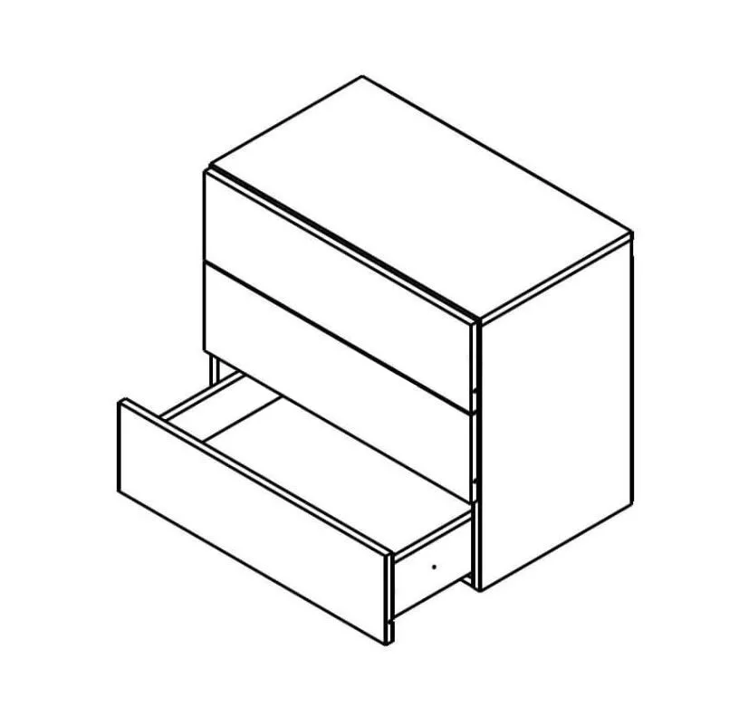 KOM3S faliszekrény három fiókot tartalmaz.
