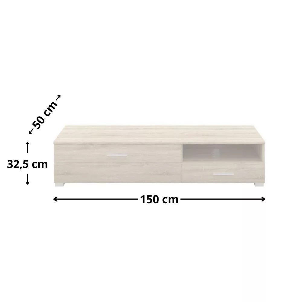 A VUSHER bútorcsalád a modern bútorok képviselője; sonoma tölgy vagy fehér színben kapható, dizájnos formákkal. A TV-szekrény bal oldalán lenyíló ajtós tárolórész, jobb oldalán nyitott polcos tároló és fiók található. Kapható jobbos és balos állású verzióban is.