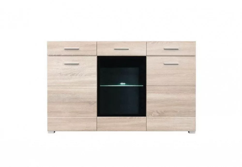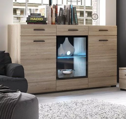 A VUSHER bútorcsalád a modern bútorok képviselője, a fekete és sonoma tölgy színek ízléses kombinációját a vitrines, belső világítással ellátott középső rész teszi még vonzóbbá. Nagy mérete és változatos tárolókapacitása révén praktikus választás a nappaliba.