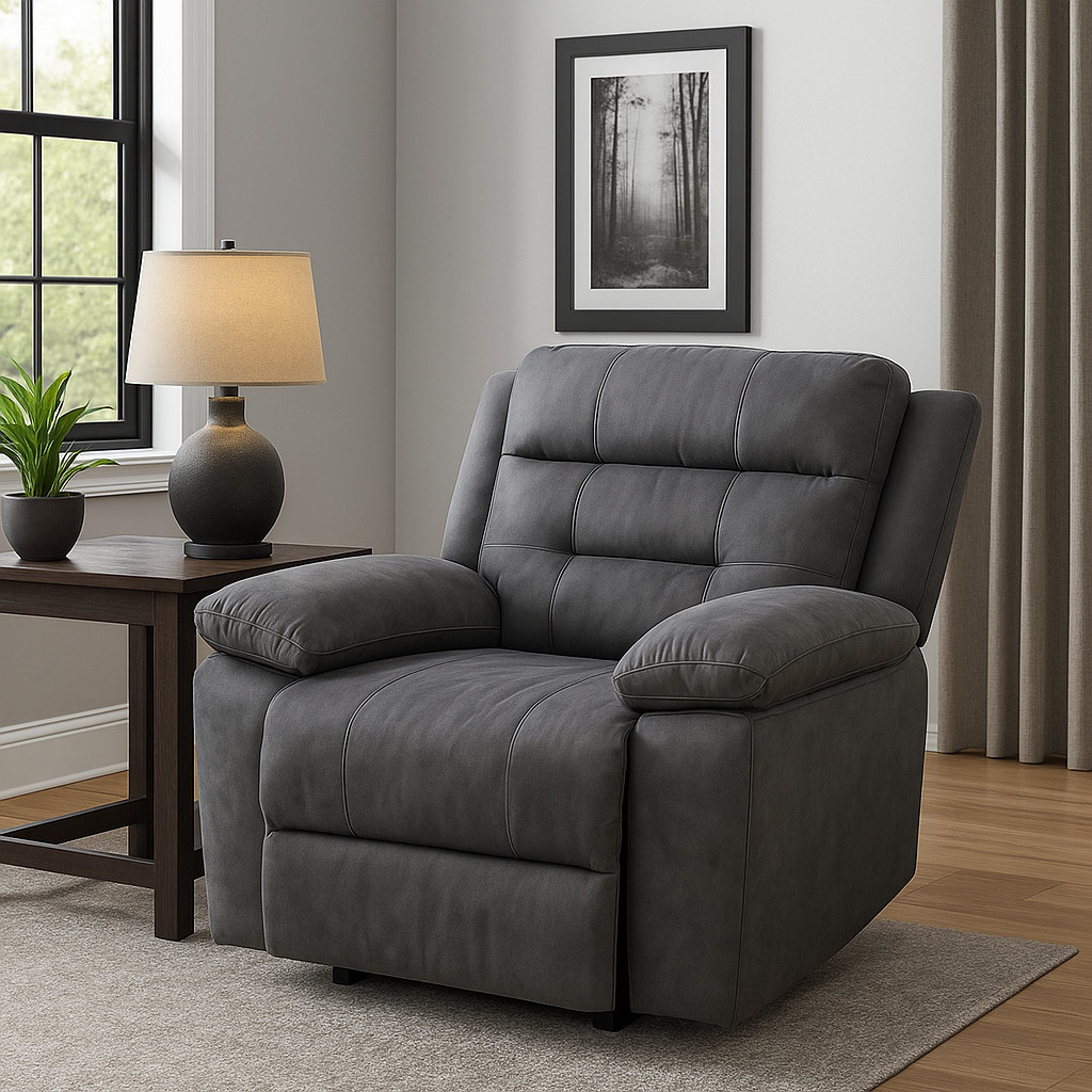 A fotel prémium érzetű, kellemes tapintású kárpittal készül, amely nemcsak elegáns megjelenést ad, de rendkívül komfortos érzetet nyújt használat közben. A széles ülőfelület és a vastag párnázás hosszú órákon át biztosítja a maximális kényelmet — legyen szó filmnézésről, pihenésről vagy egy nyugodt kávézásról.